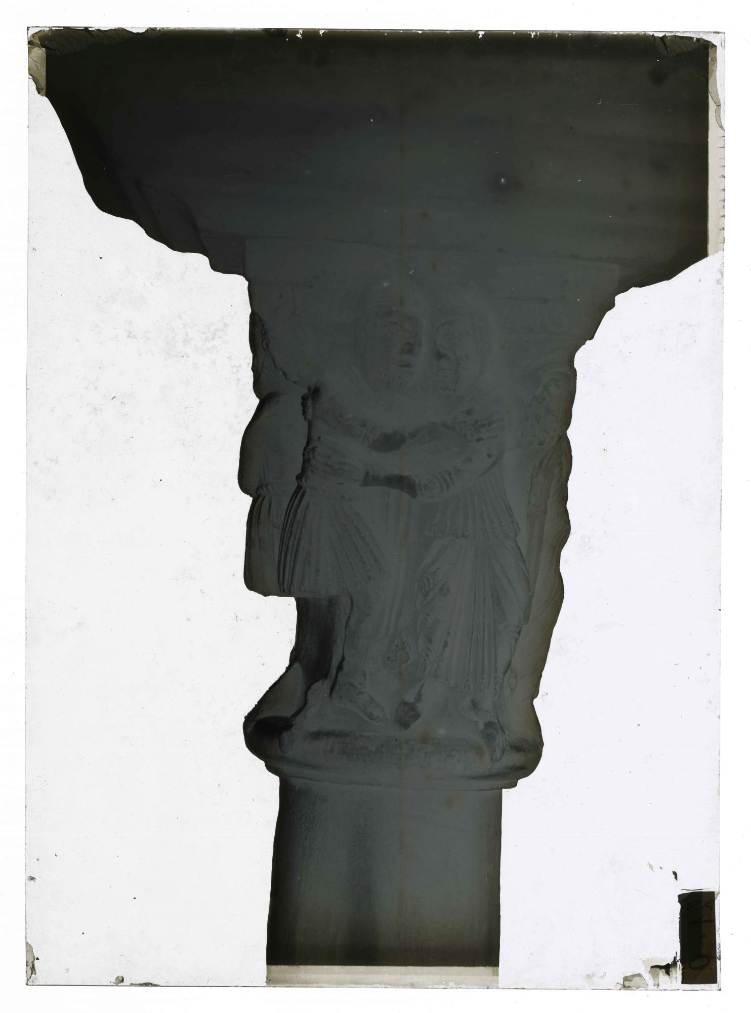 Aosta (AO)/ Sant'Orso = chiostro/ capitello 21° = lato ovest AO - Aosta - Collegiata dei Santi Pietro e Orso - Chiostro - Capitello n. 21 - prospetto ovest: Giacobbe lotta con l'angelo