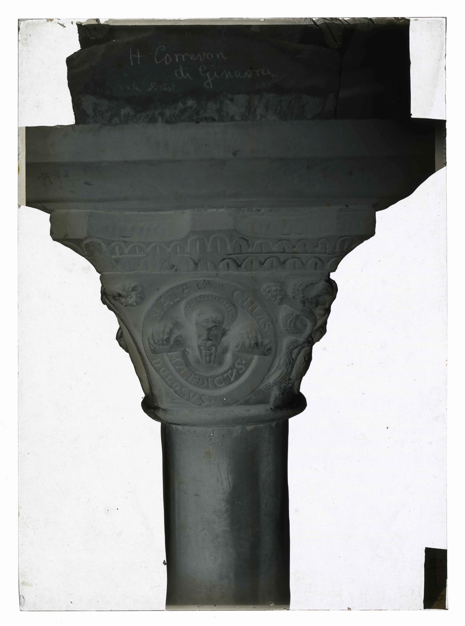 Aosta (AO)/ Sant'Orso = chiostro =/ capitello 27° = lato sud AO - Aosta - Collegiata dei Santi Pietro e Orso - Chiostro - Capitello n. 27 - prospetto sud: Malachia