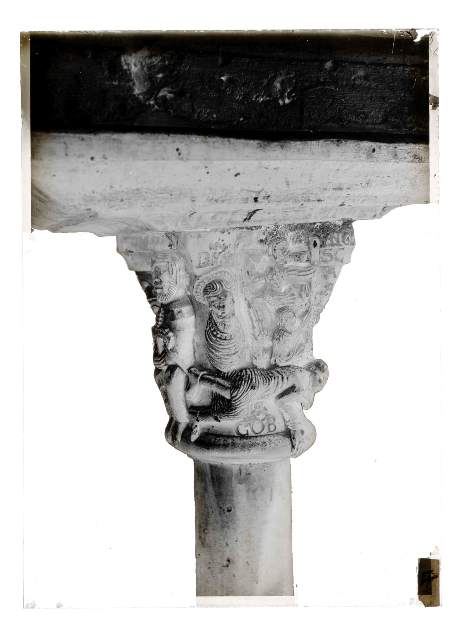 Aosta (AO)/ Sant'Orso = chiostro/ capitello n. 17 = lato nord (capitello/ verso il cortile) AO - Aosta - Collegiata dei Santi Pietro e Orso - Chiostro - Capitello n. 17 - prospetto nord: il sogno di Giacobbe