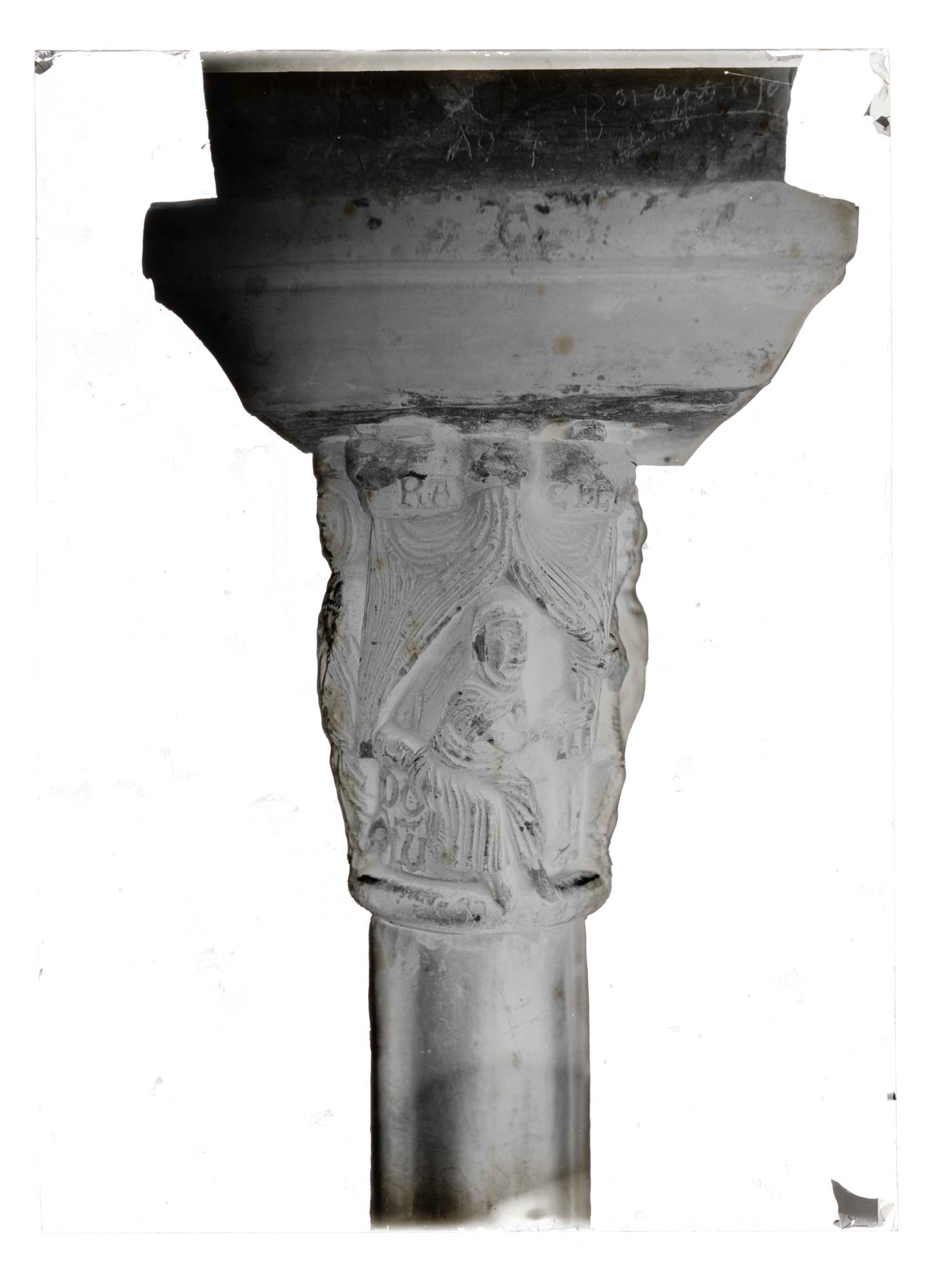 Aosta (AO)/ Sant'Orso = chiostro - / = capitello n. 20 = lato ovest AO - Aosta - Collegiata dei Santi Pietro e Orso - Chiostro - Capitello n. 20 bis - prospetto sud: Rachele sotto la tenda