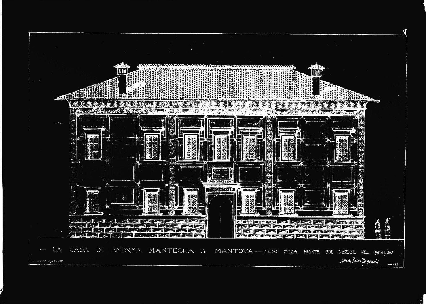 La Casa di Andrea Mantegna a Mantova. Studio della fronte sul giardino nel rapporto 1/50 - architetto Ettore Faginoli - 40x65 - 27 maggio 1941 -XIX°