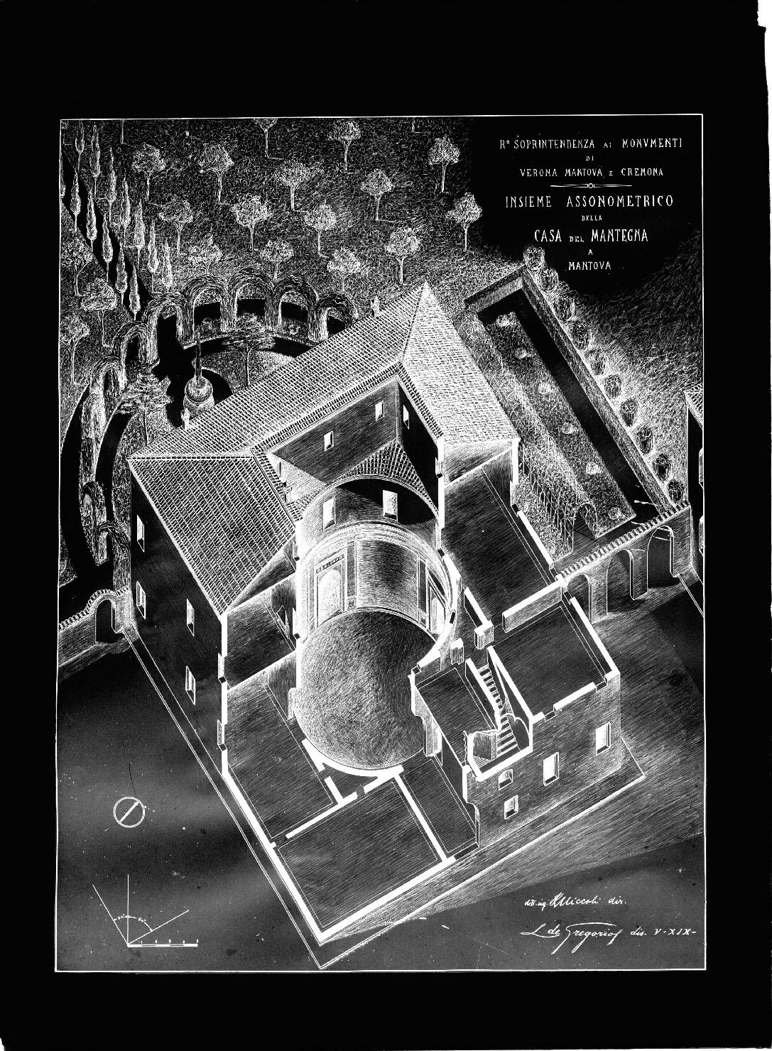 "Insieme assonometrico della Casa del Mantegna a Mantova"