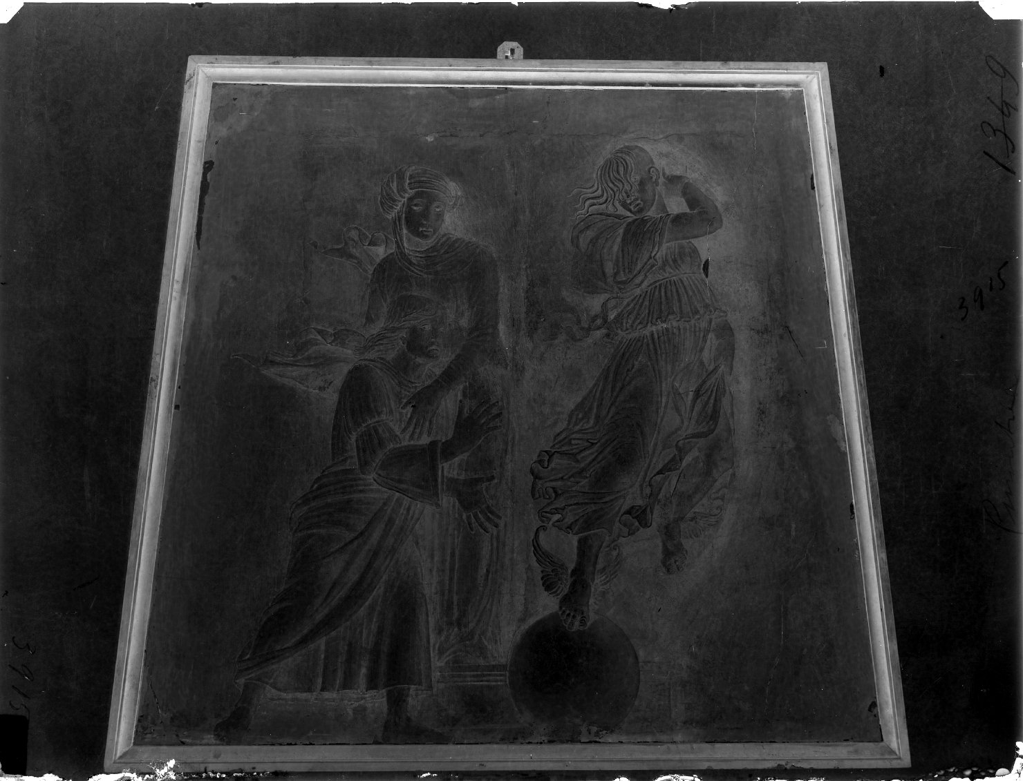 - NOTIZIE STORICO CRITICHE Affresco staccato che oranava la parte superiore di un camino. Proveniente da una sede privata non identificata, passò a Palazzo Biondi, Mantova, e nel 1885 al Palazzo Accademico. Approdato al Ducale nel 1915 vi rimase fino al 2004, anno del trasferimento al Museo della Città. Non è facile individuare il contesto preciso dello scatto che collochiamo genericamente tra il 1915, anno di ingresso a Palazzo Ducale, e il 1940, per similitudine formale con l'intero gruppo di lastre negative dell'archivio