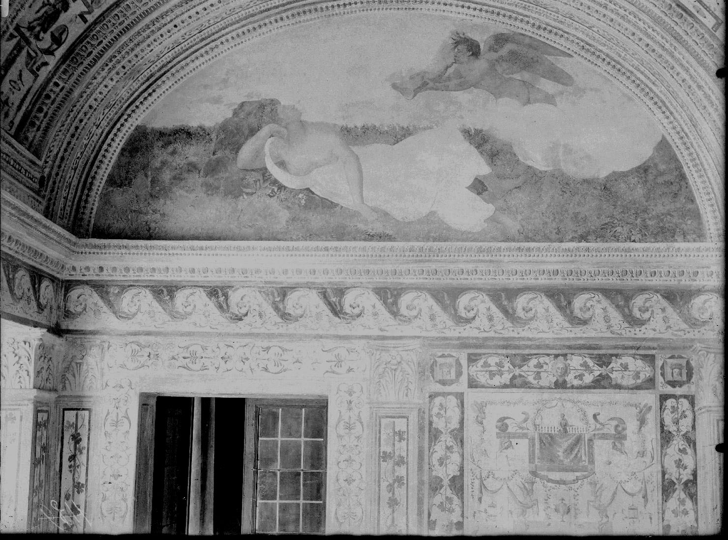 - NOTIZIE STORICO CRITICHE Il restauro dei Camerini di Corte Nova è descritto in Clinio Cottafavi, Camerini di Corte Nova, in Bollettino d'Arte, Serie II, Giugno 1928, pp. 616-623. Nel contributo si parla del cattivo stato conservativo delle lunette raffiguranti la Primavera e l'Estate, recuperate grazie all'intervento e alla tecnica di Arturo Raffaldini. L'immagine in esame non è pubblicata nell'articolo ma è da ritenersi comunque successiva al restauro. La decorazione dell'ambiente si deve a Giulio Romano con la collaborazione di Rinaldo Mantovano, Anselmo de Canis e Girolamo da Pontremoli