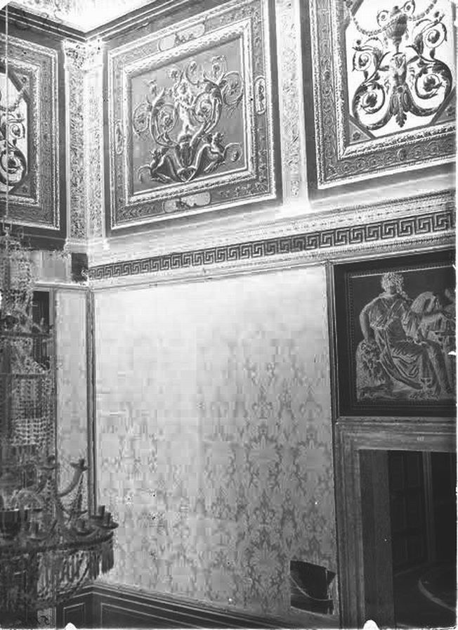 - NOTIZIE STORICO CRITICHE L'immagine è pubblicata nel testo di Stefano L'Occaso accompagnata dalla didascalia "Mantova, palazzo Ducale, sala del Labirinto prima dei restauri del 1957-1960". La lastra negativa riporta una datazione manoscritta sul lato emulsione, è dunque databile con certezza al 1920, mostrando un assetto della sala che verrà modificato in maniera sostanziale nel successivo restauro degli anni '50. (vedi L'Occaso Stefano, Museo di Palazzo Ducale di Mantova. Catalogo generale delle collezioni inventariate, p.39, fig.13)