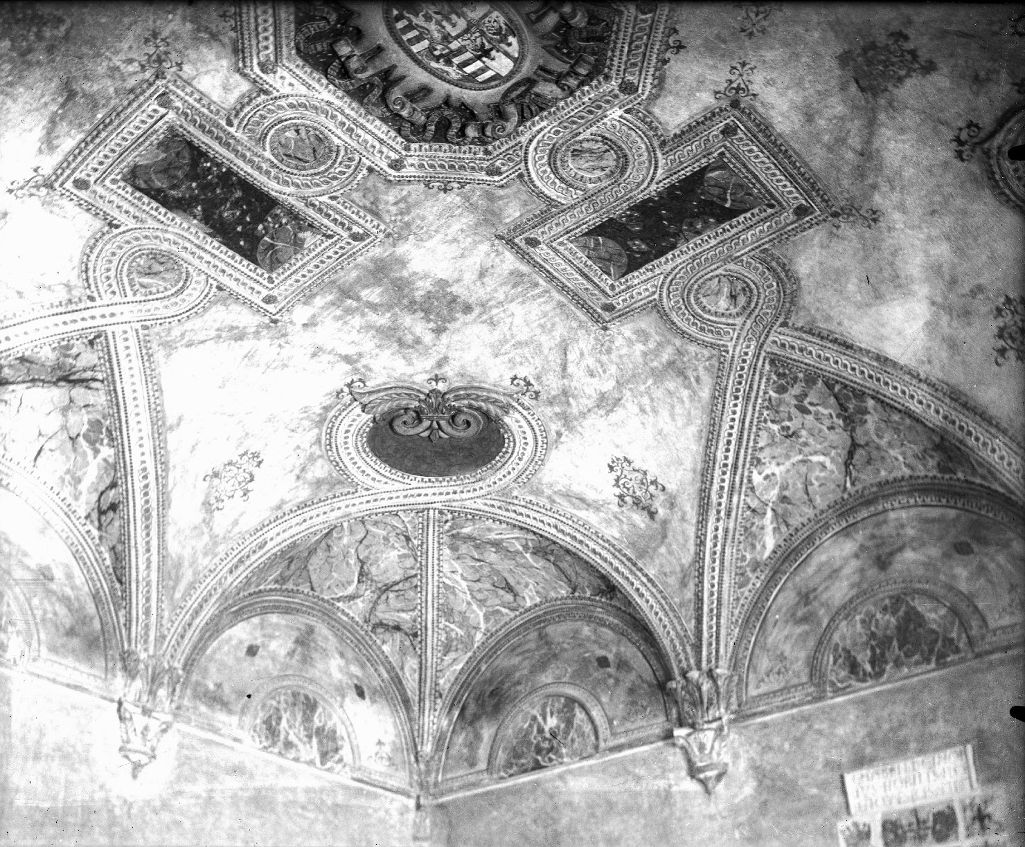 - NOTIZIE STORICO CRITICHE Nel marzo 1926 furono compiuti lavori di restauro in alcune delle sale situate al piano nobile del Castello di San Giorgio. Fra queste è annoverata la Sala delle Armi, sala privata di Francesco II Gonzaga, terzo marchese di Mantova, situata nel torrione di Sud-Ovest. La lastra risulta pubblicata nel saggio di Clinio Cottafavi, R. Palazzo Ducale. Mantova [Appartamento giuliesco di Castello], "Bollettino d'arte del Ministero della pubblica istruzione", serie II, vol. V, n. 10 (aprile), 1926, pp. 468-474: fig. 6, p. 473)