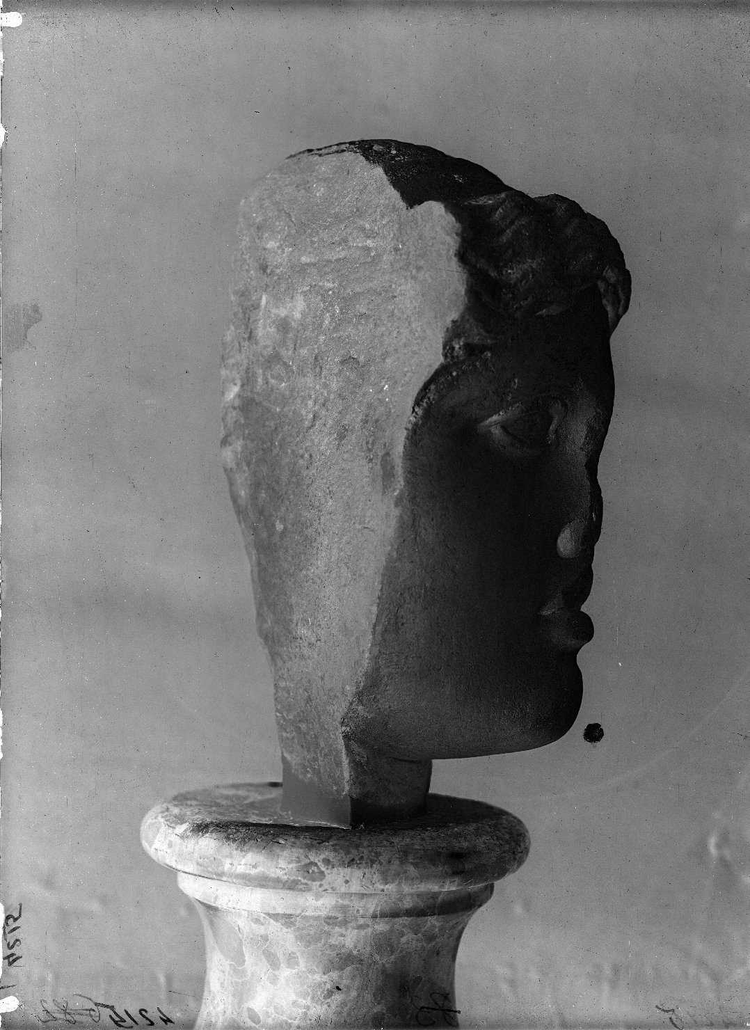 - NOTIZIE STORICO CRITICHE La lastra ritrae una scultura romana rappresentante una testa muliebre e conservata presso il Palazzo Ducale di Mantova. L'immagine è pubblicata in Alda Levi, Sculture greche e romane del Palazzo Ducale di Mantova, Roma, Biblioteca d'arte editrice, 1931, tav. XXa, e una scheda dell'opera, n. cat. 3, è a p. 18, Parte anteriore di testa muliebre. Sono visibili i dettagli segnalati nella scheda tecnica dalla Levi: "Resta solo il volto e il lato sin. della testa. Tagliata nettamente a squadra nella parte retrostante. Rotto il naso, il labbro sup. e parte dei capelli". La scultura è conservata presso il Museo del Palazzo Ducale di Mantova dal 1913, dopo la cessione da parte del Comune delle collezioni prima collocate presso il Palazzo degli Studi; tale raccolta è costituita dai pezzi della collezione gonzaghesca, insieme ad altre collezioni patrizie mantovane, riuniti negli anni 1773-1775 su iniziativa dell'abate Gian Girolamo Carli, segretario della Reale Accademia di Scienze e Belle Lettere (attuale Accademia Nazionale Virgiliana) e fu inizialmente allestita presso il Palazzo degli Studi. Solo nel 1925, anche a causa degli eventi bellici, Alda Levi, su incarico del Direttore di Palazzo Ducale Clinio Cottafavi, realizzò l'allestimento nel Museo di Palazzo Ducale. Per la storia delle collezioni si veda ivi, pp. 3-12 e soprattutto Alda Levi, Il Museo greco-romano nel Palazzo Ducale di Mantova, "Bollettino d'Arte", novembre 1925, pp. 225-234
