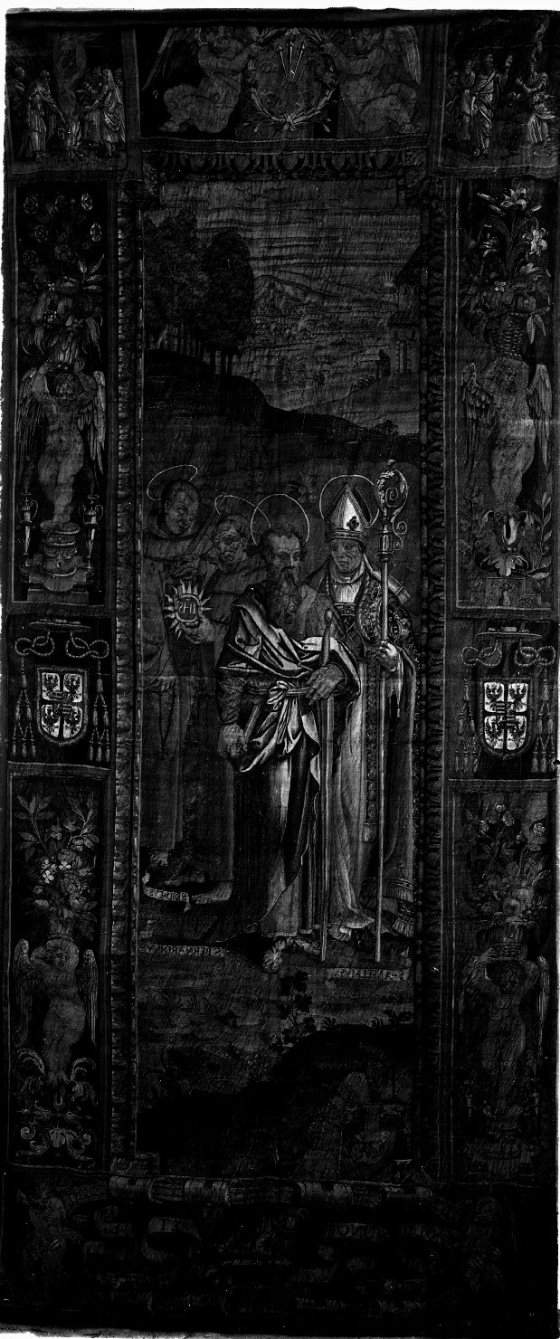 Bottega di Maurice Dubout (?), su disegno di Henri Lerambert (?), I santi Anselmo, Paolo, Bernardino da Siena e Diego d'Alcalà, Parigi, 1598. Mantova, Museo Diocesano "Francesco Gonzaga"