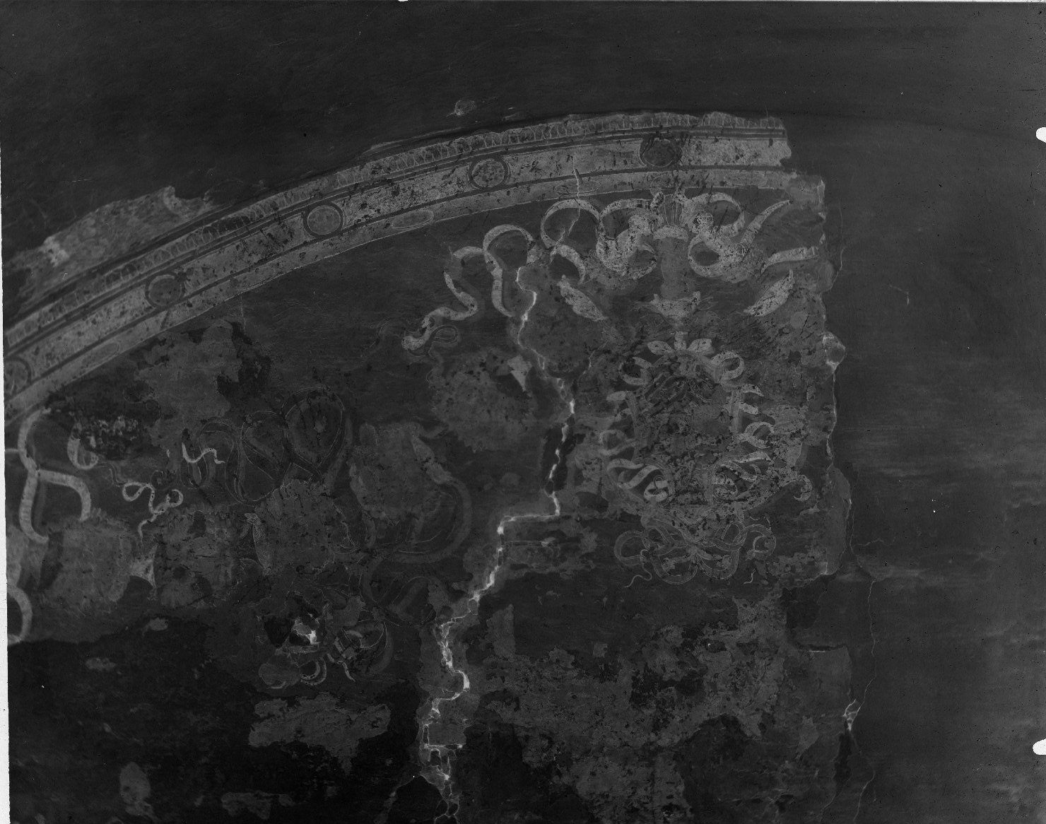 - NOTIZIE STORICO CRITICHE L'inventario veronese definisce l'immagine come "Carcere di Tito Speri". Si tratta di un dettaglio decorativo della Sala del Sole, posta nel torrione nord-est del Castello di San Giorgio. Questo ambiente, come altri del castello, fu adibito dagli austriaci a carcere dove furono rinchiusi i cosiddetti martiri di Belfiore: in particolare Tito Speri fu arrestato nel 1852 e giustiziato l'anno successivo. I lavori di restauro del pian terreno del Castello presero il via nel 1923: purtroppo il perdurare di un utilizzo improprio aveva danneggiato gravemente le sale. Nella Sala del Sole fu ripristinata la bella volta decorata e ricostituito il fregio che corre alla base del soffitto, con nastri e medaglioni. (vedi: Clinio Cottafavi, Palazzo Ducale di Mantova - Pian terreno di Castello in Bollettino d'Arte, Serie III, Maggio 1931, pp. 521-528). L'immagine in esame riprende un dettaglio di queste pitture testimoniando il pessimo stato conservativo precedente ai lavori
