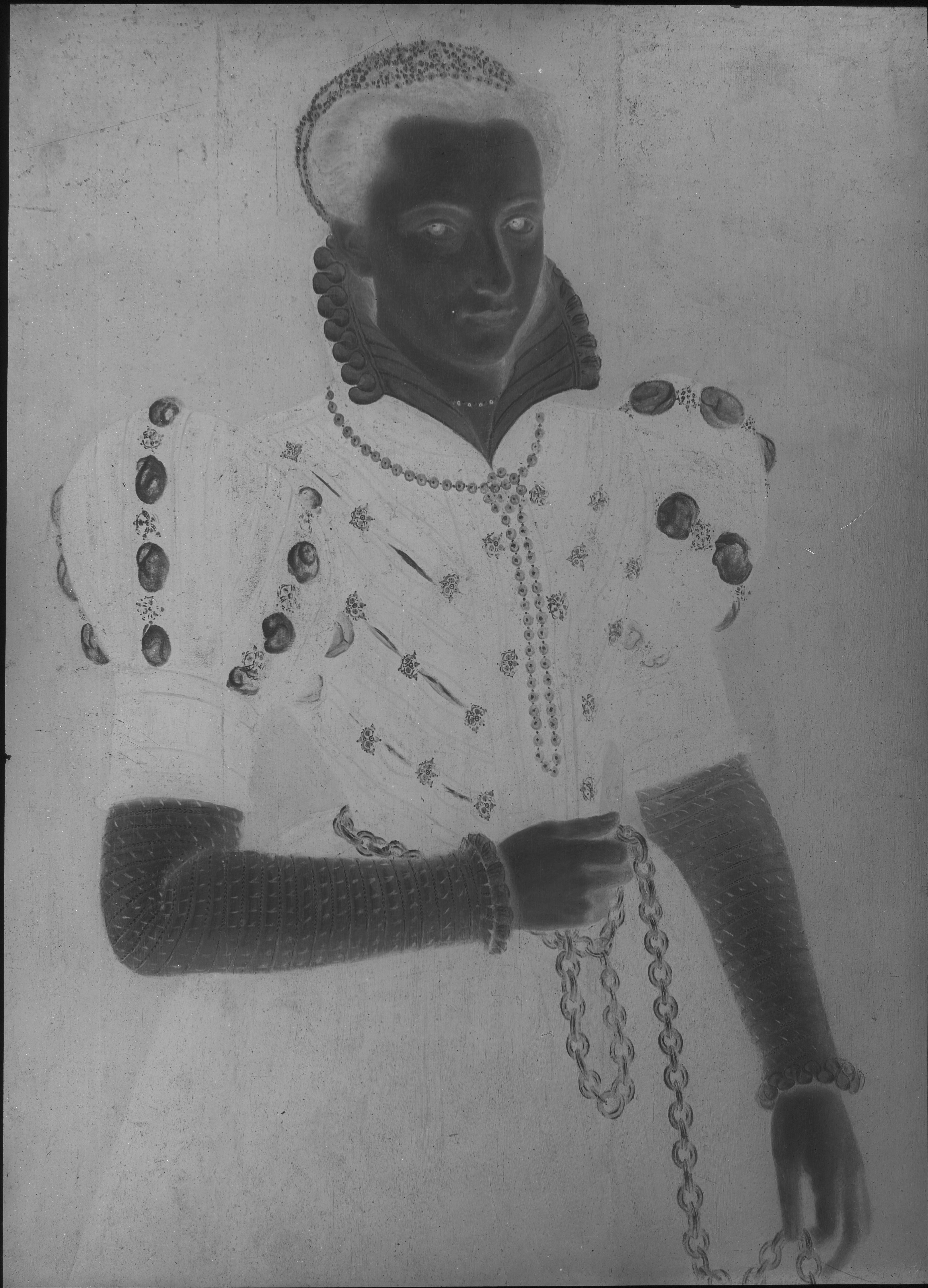 - NOTIZIE STORICO CRITICHE La lastra ritrae la pittura su tavola, copia da Anthonis Mor, con ritratto di una dama ignota, dubitativamente identificata con Mary Stuart. L'opera, esposta nella Sala dei Falconi di Palazzo Ducale (Corte Vecchia) era conservata presso Sant'Orsola in Mantova fino al 1786 e venne poi trasferita presso il Regio Ginnasio prima e presso il Palazzo Accademico prima del 1810 e fino al 1915-1923, quando fu infine trasferita nel Palazzo Ducale dove è tuttora conservata. La data dello scatto risale con tutta probabilità agli anni 1915-1923, quando l'opera fu acquisita dal Museo di Palazzo Ducale. Cfr. Stefano L'Occaso, Museo di Palazzo Ducale di Mantova. Catalogo generale delle collezioni inventariate. Dipinti fino al XIX secolo, Mantova, Publi Paolini, 2011, pp.207-208, n. cat. 218, tav. LXI. Vedi anche Leandro Ozzola, La Galleria di Mantova. Palazzo Ducale, a cura dell'Ente Provinciale per il Turismo, Mantova, 1953, n. cat. 116, p. 18 e fig. 85, dove l'opera è attribuita a Giovanni Bahuet