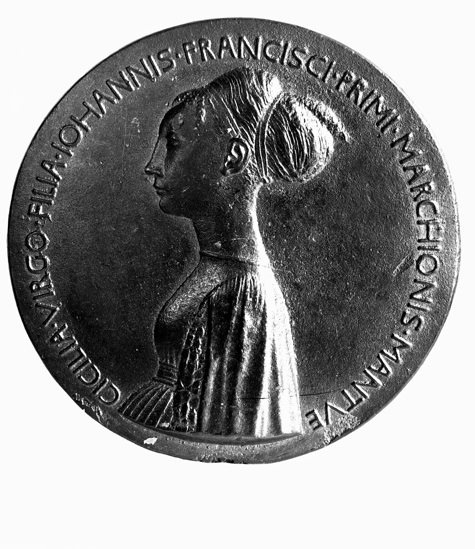 - NOTIZIE STORICO CRITICHE La lastra rappresenta il recto della medaglia in bronzo coniata da Pisanello con il profilo di Cecilia Gonzaga, figlia di Gianfrancesco primo marchese di Mantova (cfr. NCTN 03230772 per il verso). L'esemplare conservato alla Ca' d'Oro di Venezia fu esposto alla Mostra iconografica gonzaghesca del 1937. L'immagine non è pubblicata nel catalogo della mostra, ma lo scatto è stato probabilmente eseguito in questa occasione: cfr. Mostra iconografica gonzaghesca, Catalogo delle opere, Mantova, Palazzo Ducale, 16 maggio-19 settembre 1937, Mantova, Tip. L'Artistica, 1937, p. 13, n. cat. 54. Per una scheda recente della medaglia cfr. A casa di Andrea Mantegna. Cultura artistica a Mantova nel Quattrocento, a cura di Rodolfo Signorini, Catalogo della mostra, Mantova, 26 febbraio-4 giugno 2006, Milano, Silvana, 2006, pp. 385-386, n. 41, fig. 41 (esemplare del Museo Numismatico della Fondazione Banca Agricola Mantovana)