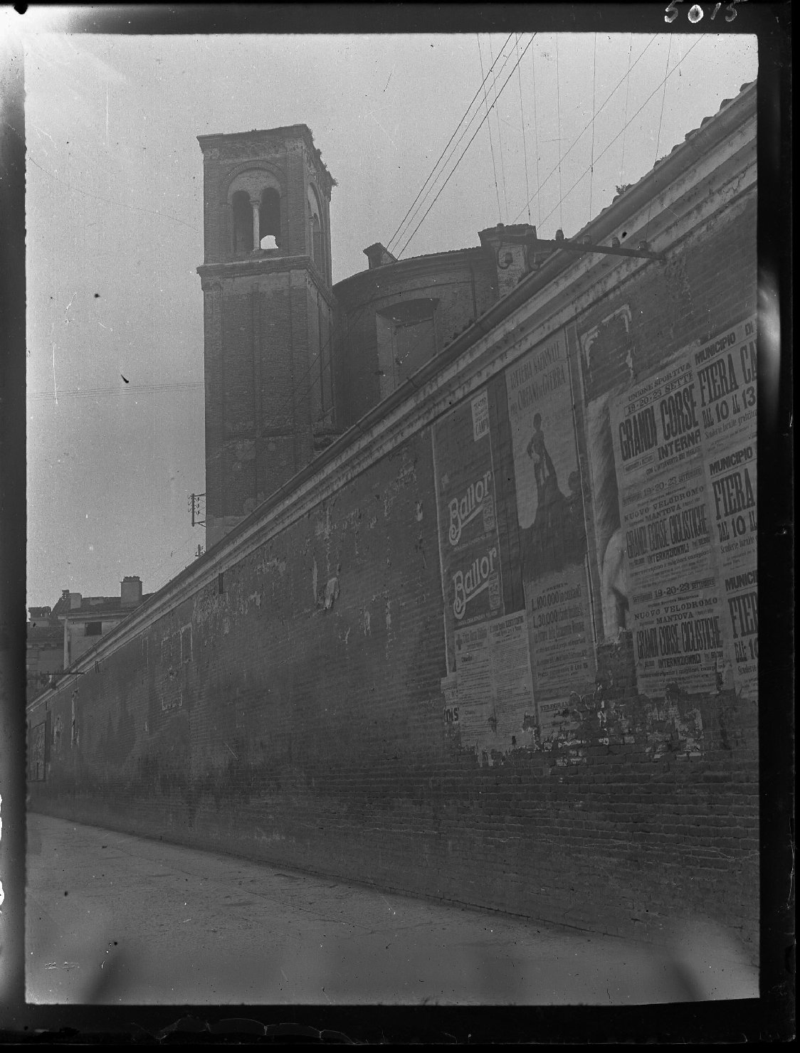 - NOTIZIE STORICO CRITICHE Per esigenze di riassetto urbanistico, ricavando una nuova arteria viabile tra Piazza Garibaldi e Via XX Settembre, attorno al 1925 vennero completamente demoliti chiesa e convento di San Domenico. Dell'intero complesso rimase solo il campanile. Presso l'Archivio della Soprintendenza Architettonica bresciana è conservata una lettera di richiesta, da parte della Soprintendenza di Verona allora competente per area territoriale, indirizzata a Guglielmo Pacchioni, Regio Ispettore ai Monumenti a Palazzo Ducale dal 1912 al 1923. Si richiedono immagini che mostrino lo stato dell'abside e del campanile di S. Domenico, con preghiera di utilizzare il formato 18x24 e di trasmettere la nota spese. Lo scatto in esame riprende la parte posteriore del complesso, parzialmente coperta dal muro di cinta, con l'abside e la torre campanaria. La ripresa è da confrontarsi con scheda NCTN 3253065. L'arco cronologico corrisponde alla richiesta fatta dalla Soprintendenza veronese, prima di intraprendere i lavori di demolizione e di riqualificazione urbanistica dell'intera area anche se il formato è differente rispetto a quello indicato. Il bordo scuro intorno all'immagine suggerisce una riproduzione da positivo