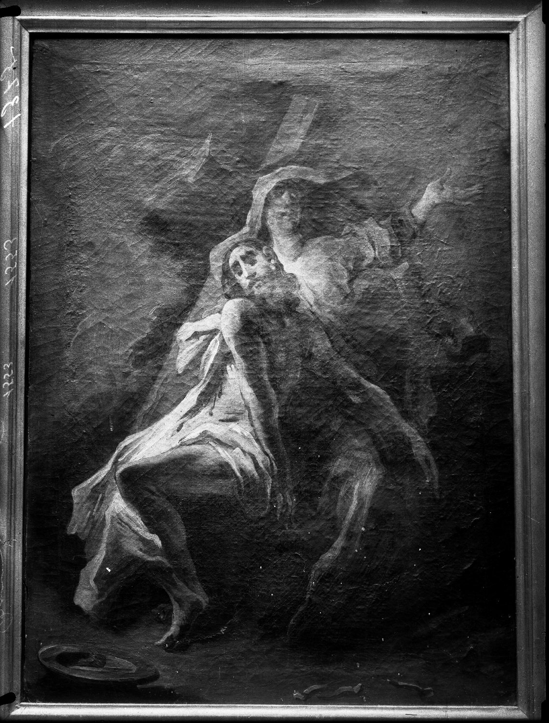 - NOTIZIE STORICO CRITICHE Non abbiamo la certezza che questo dipinto sia stato esposto nel 1933 in occasione della mostra retrospettiva su Bazzani, allestita da Nino Giannantoni in Palazzo Ducale. "Le 54 tele, gentilmente concesse da enti pubblici, da chiese parrocchiali e da privati, criticamente scelte e bellamente ordinate dal Sig. Nino Giannantoni in tre grandi sale del Palazzo Ducale costituirono un sorprendente complesso d'opere [...]" (vedi: Catullo Semeghini, Cronache mantovane. La mostra retrospettiva del Bazzani, in Emporium, vol. LXXVIII, n. 463, luglio 1933). E' possibile che lo scatto sia stato realizzato comunque in occasione dell'esposizione e per questo motivo sia accorpato, nell'inventario cartaceo, ai materiali relativi al Palazzo Ducale