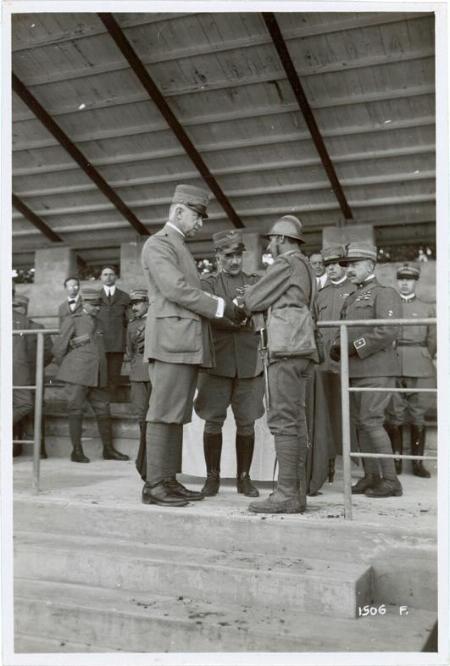 Premiazione della Brigata Veneto dopo la grande battaglia del Piave. S.A.R. il Duca d'Aosta e il gen. Diaz