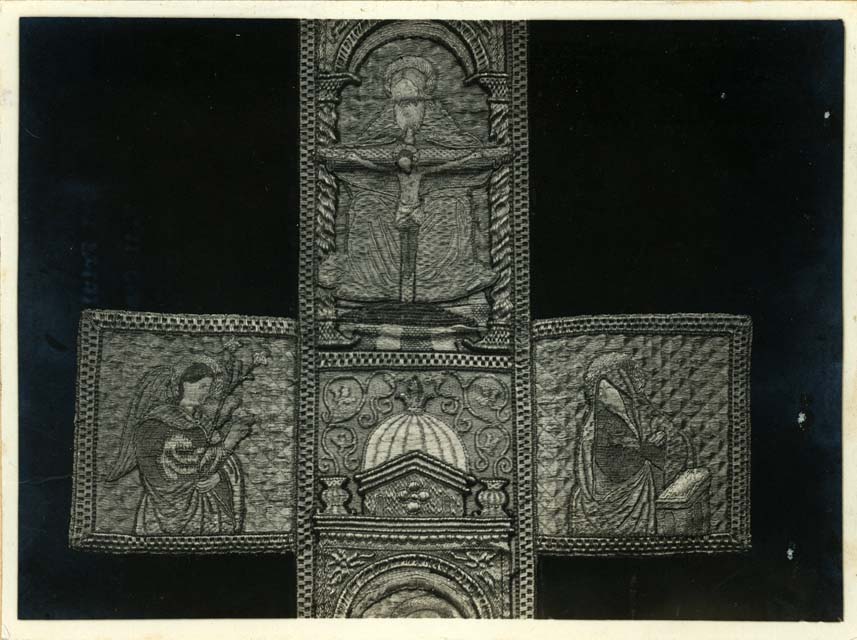 Documentazione storico artistica: sec. XVI, pianeta, recto, particolare, Crocifissione, Annunciazione; manifattura veneziana