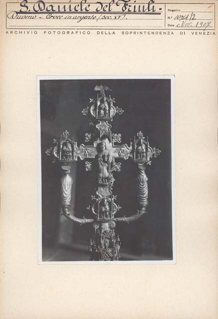 - ISCRIZIONI sul supporto secondario: in alto - S. Daniele del Friuli/ Duomo - Croce argento (sec. XV)./ (Udine)/ ARCHIVIO FOTOGRAFICO DELLA SOPRINTENDENZA DI VENEZIA/ Negativo/ N° 1074/ Data Nov. 1907 - Archivio Fotografico Soprintendenza ai Monumenti di Venezia - a penna/ a stampa - italiano