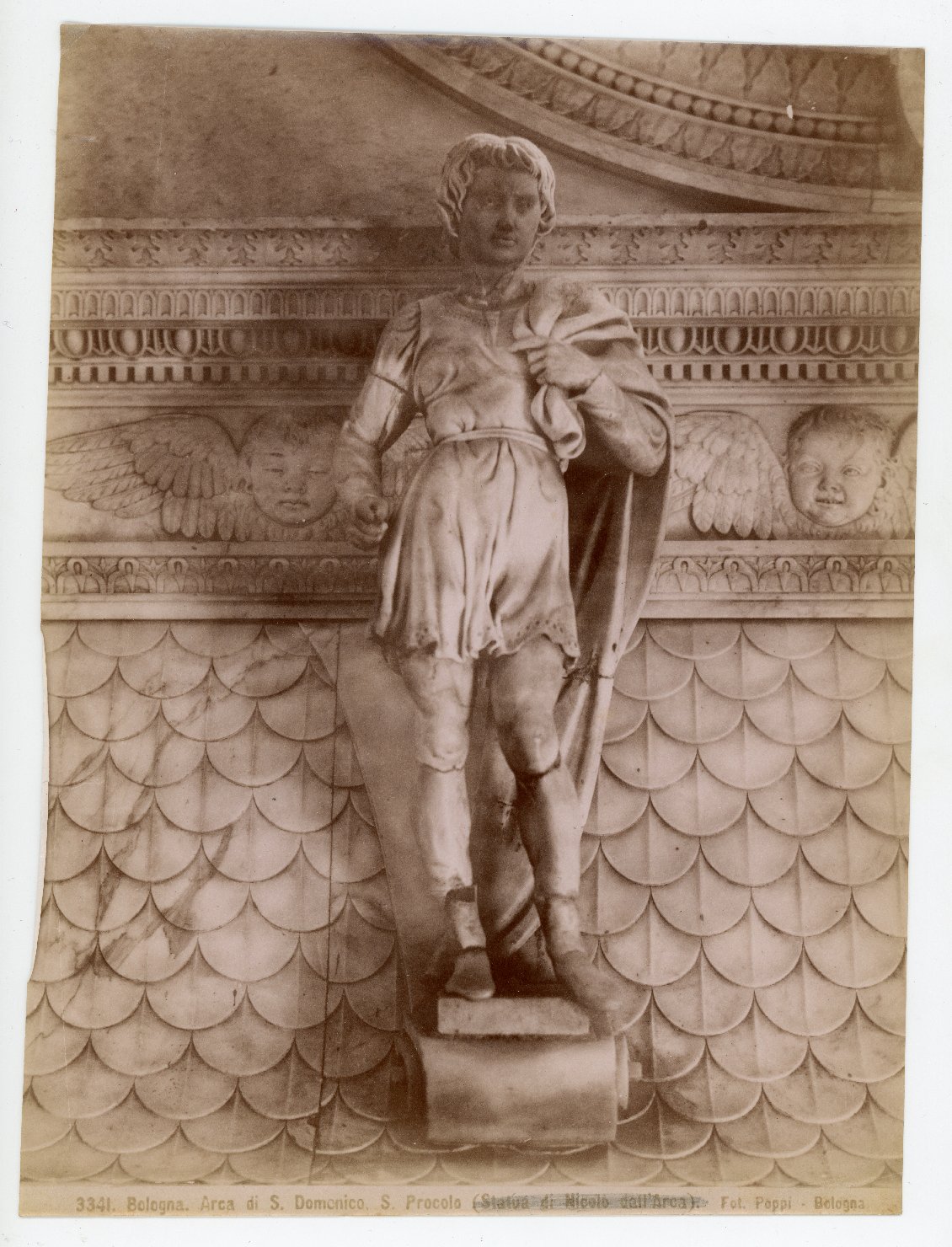 - ISCRIZIONI supporto primario: recto - 3341. Bologna. Arca di S. Domenico, S. Procolo (statua di Nicolò dall'Arca) [attribuzione cancellata a matita]. Fot. Poppi - Bologna -