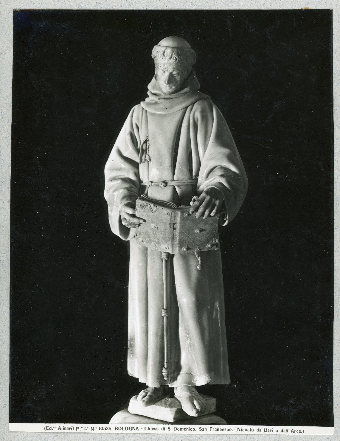 • ISCRIZIONI sul supporto primario: recto - (Ed. ne Alinari) P.°I.° N.° 10535. BOLOGNA - Chiesa di S. Domenico. San Francesco. (Niccolò da Bari o dall'Arca.) -
