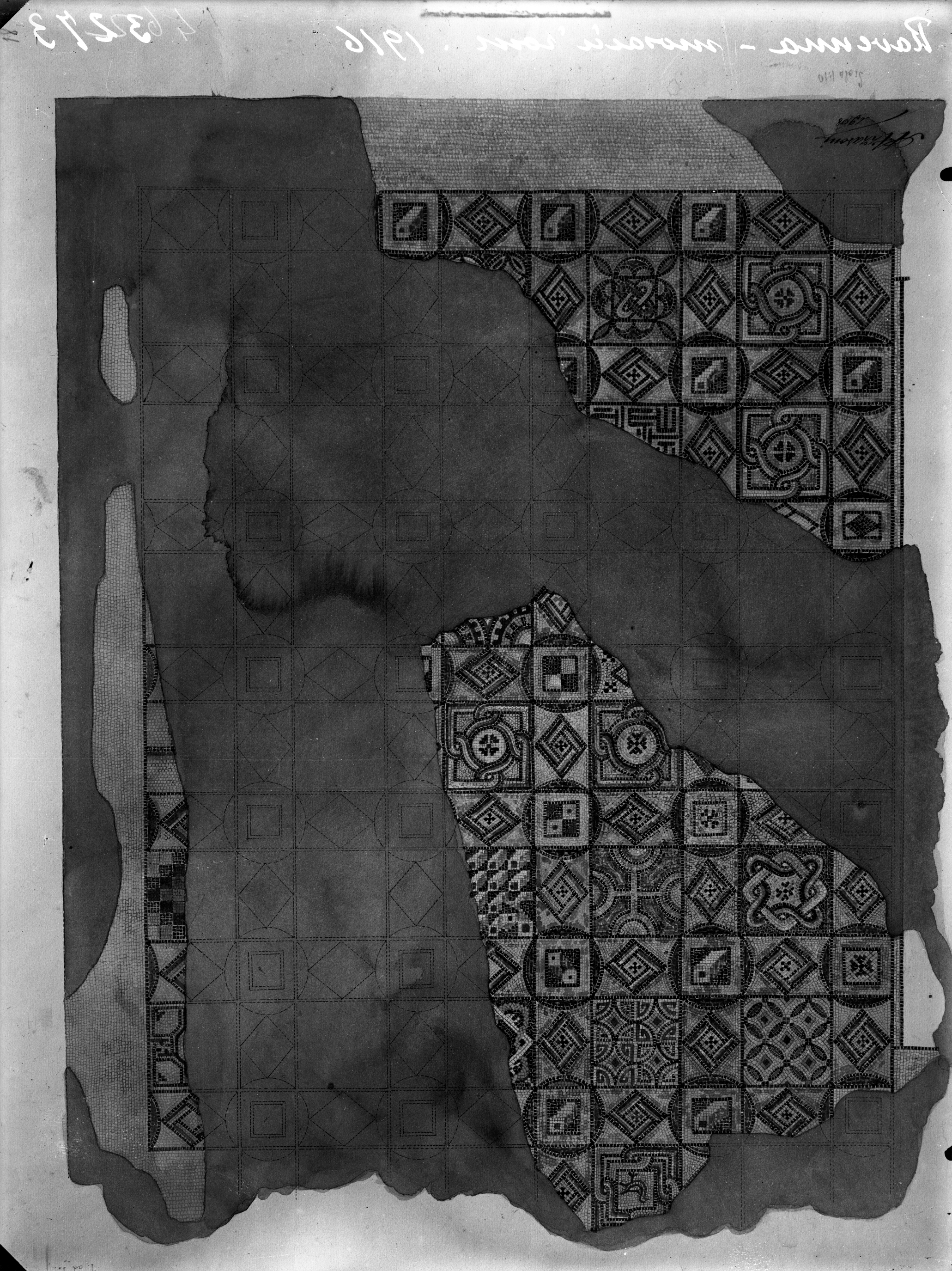 Disegno di pavimentazione musiva a disegni geometrici policromi (Alessandro Azzaroni). Dal cosiddetto Palazzo di Teodorico