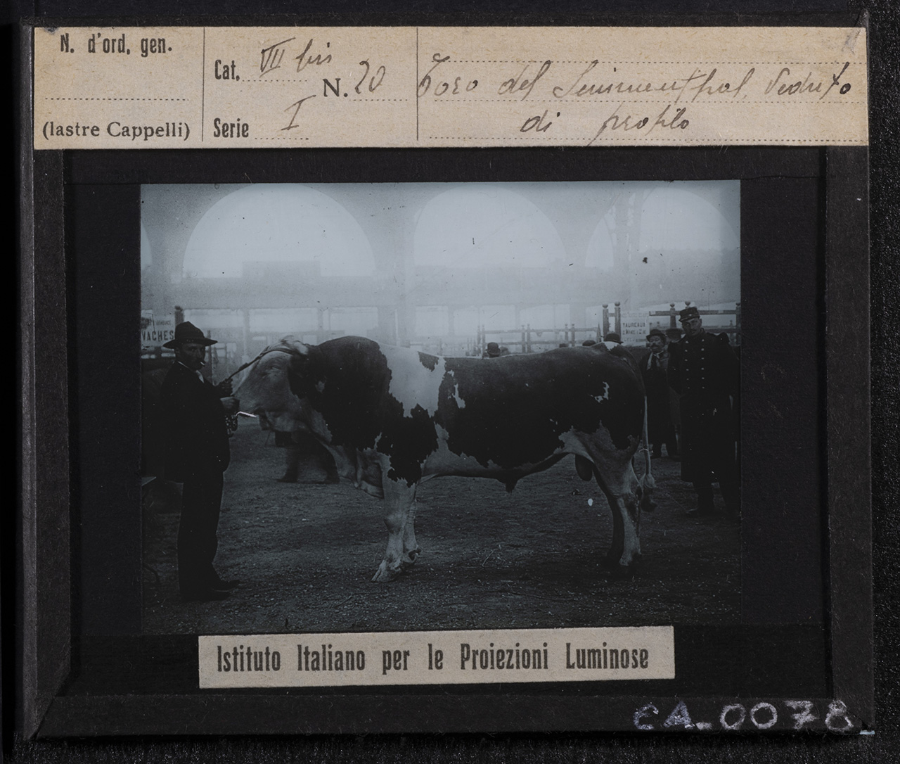 - NOTIZIE STORICO CRITICHE I materiali presenti nel fondo lasciano supporre una riproduzione da positivi o da libri, come spesso si deduce da mascherature che vanno a ricoprire titolazioni originali o dalla presenza di puntine da disegno usate per fissare ad un supporto la fotografia da duplicare. Le diapositive fotografiche su vetro per lanterna magica sono realizzate tra il 1921 e il 1932 a Milano, con riprese eseguite dall’Istituto Italiano per le Proiezioni Luminose (1921-1935 ca.) e lastre prodotte dalla ditta Cappelli (1885-1932), industria di grande rilievo che si impone sul mercato italiano, soprattutto dopo l’avvento della gelatina bromuro d’argento che semplifica il processo di sviluppo e stampa dei negativi e rende possibile una svolta verso l’industrializzazione in campo fotografico. Le speciali proiezioni delle immagini, effettuate con proiettori al carburo (acetilene), illustrano le lezioni di agricoltura e zootecnica che si tengono in modo itinerante in varie località dell’area bolognese. Tali lezioni sono promosse a livello nazionale dalle Cattedre Ambulanti di Agricoltura, una Istituzione nata nella seconda metà dell’Ottocento, quando le università del Paese riescono a formare i primi agronomi e quando si consolidano gli istituti agrari: sono gli uomini formatisi nelle scuole agrarie a guidare le prime cattedre, la loro determinazione porta allo sviluppo dell’agricoltura italiana, il loro scopo iniziale è quello di tenere delle conferenze di “propaganda agricola”, che consentano di diffondere nuove tecniche e raggiungere gli agricoltori anche nelle campagne più sperdute. L’insegnamento delle buone pratiche agricole serve a combattere l’ignoranza e l’isolamento della società rurale, i risultati sono subito tangibili: incremento della produzione agricola e del patrimonio zootecnico, introduzione e diffusione di nuove piante e varietà. La Cattedra Ambulante di Agricoltura di Bologna (in seguito Ufficio provinciale per l’Agricoltura) è attiva dal 1893 al 1935, ne sono presidenti Domizio Cavazza e poi Luigi Zerbini, nella sua genesi ha un ruolo primario il Comizio agrario di Bologna (inaugurato nel 1867, nel 1915 si separa dalla Cattedra) presieduto da Luigi Pizzardi e poi da Enrico Pini. Organi ufficiali del Comizio agrario di Bologna e della Cattedra Ambulante di Agricoltura di Bologna sono i periodici “L’Italia agricola” (1869-1991), “L’agricoltura bolognese” (1907-1929) e gli “Annali della cattedra provinciale di agricoltura e dell’ufficio tecnico del Comizio agrario di Bologna” (1893-1912). Con la legge n. 1220 del 13 giugno 1935 la Cattedra Ambulante di Agricoltura di Bologna viene soppressa e sostituita dall’Ispettorato provinciale di Agricoltura