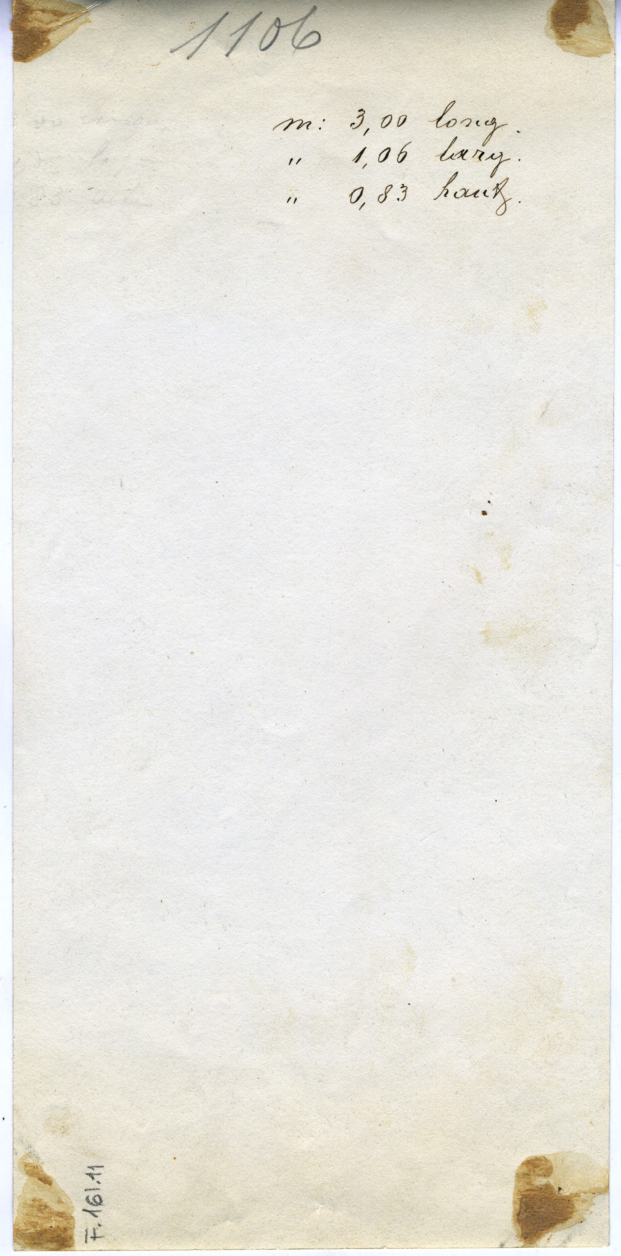 busta di cartoncino ingiallito (cm 27 x 37), fortemente consumata agli angoli e ai bordi. Sulla parte anteriore, scritta a inchiostro nero con l'indirizzo del destinatario "Al Sign/ Ugo Bardini/ Via S. Nicolò/ Firenze" con indicazione "Stampe" in alto e francobollo nell'angolo superiore destro con data appena leggibile (1938?). Sulla parte anteriore e sul verso, resti di disegni a matita riproducenti delle modanature. All'interno, ventiquattro foto di tavoli vari insieme a numerosi ritagli e tavole di pubblicazioni (raccolti ora in un inserto)