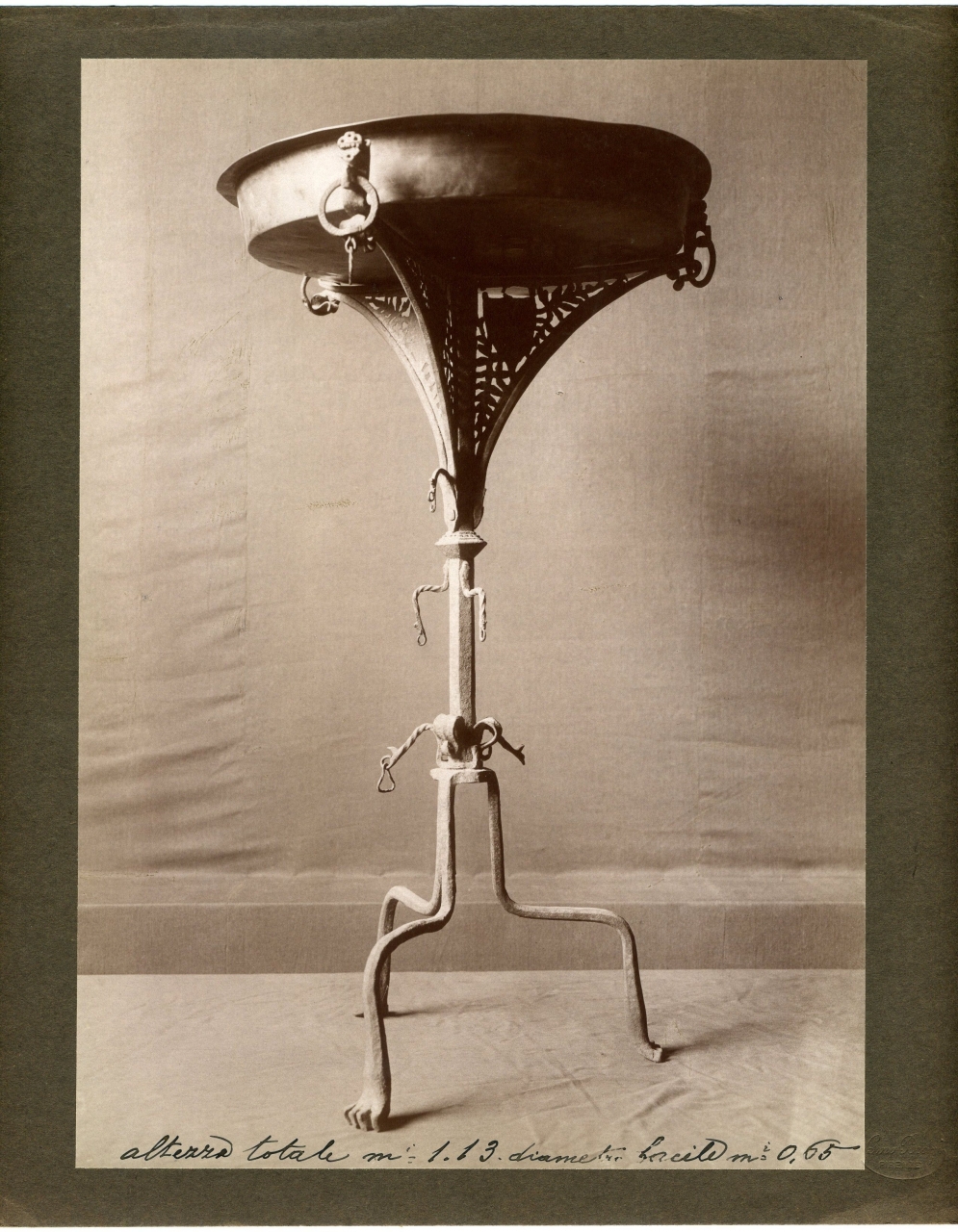 - ISCRIZIONI Sull'immagine: in basso - altezza totale mi 1. 13. diametro bacile mi 0. 65 - a penna -