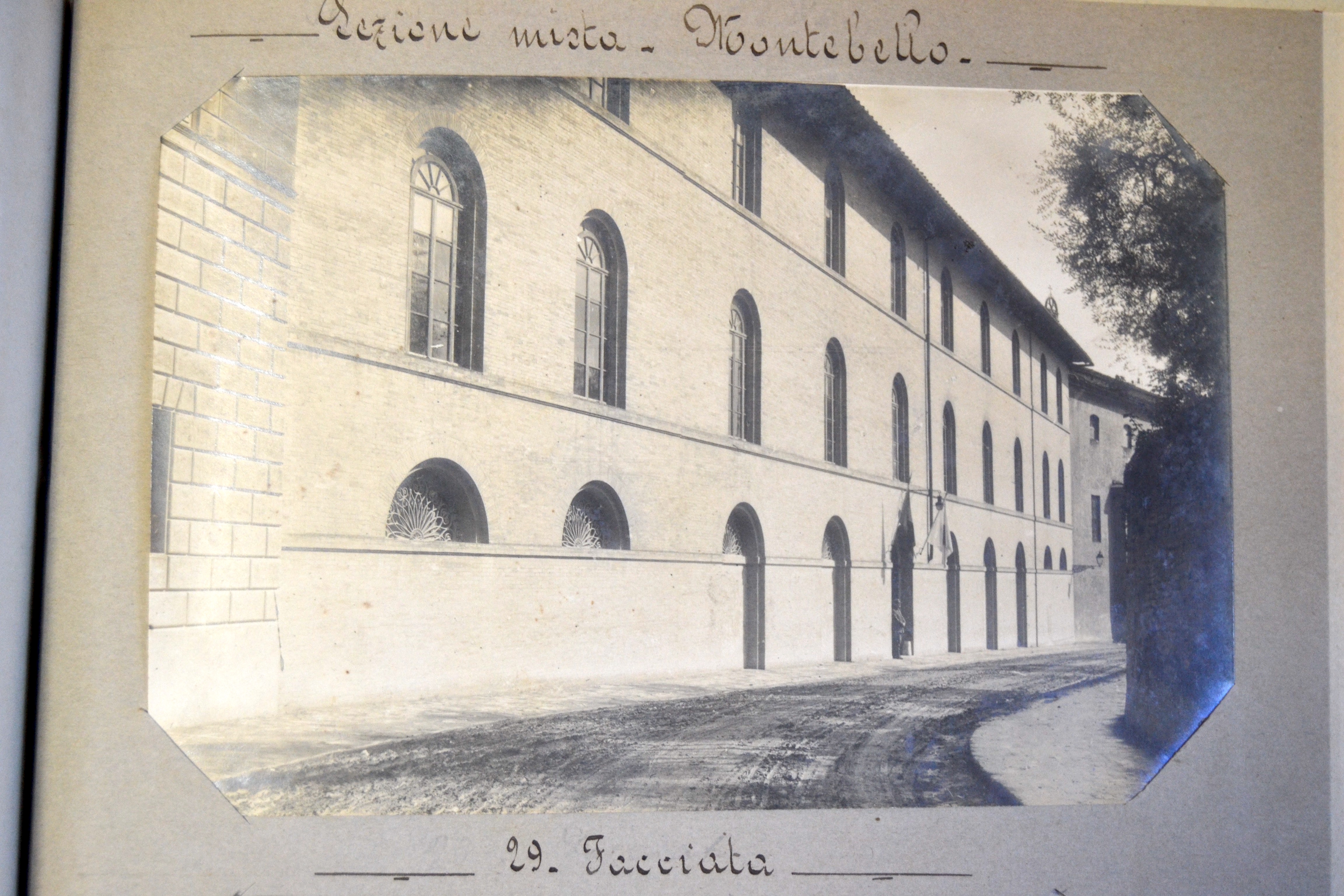 Il positivo raffigura il prospetto della Sezione mista dell'Ospedale Territoriale di Siena, nel palazzo allora in via Montebello, oggi via Campansi, non distante dall'attuale via Montebello. L'Ospedale operava per conto della Croce Rossa Italiana. La fotografia è fermata alla pagina attraverso i 4 angoli, inseriti nelle apposite fessure ed è numerata con il n. 29, numerazione che segue progressivamente quella attribuita alle fotografie delle tavole precedenti che illustravano la Sezione chirurgica nel Palazzo al Prato, sempre a Siena. Dalle informazioni che troviamo sul verso, però, sembra che inizialmente la numerazione delle tavole e delle fotografie dovesse ripartire dal n.1, accompagnando così la partizione e differenziazione iconografica a quella tematica