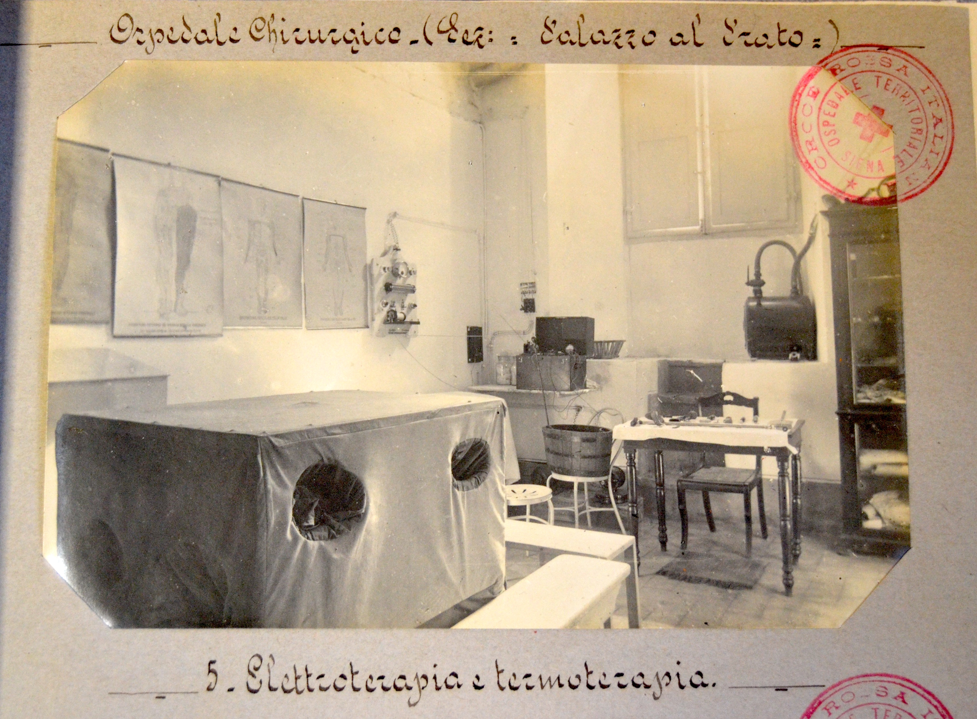 Sala per elettroterapia e termoterapia nel Palazzo al Prato di Siena, allora sede dell’Ospedale Territoriale