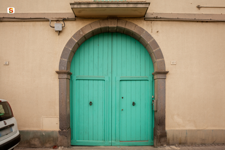 ubicato nel centro di Samassi, a poca distanza dalla Chiesa di San Giuseppe, ed inserito al centro del prospetto principale NE di un'abitazione urbana, il bene è uno dei portali storici del paese. Si tratta di un portale ligneo a doppia anta a protezione di un'apertura ad arco a tutto sesto. L'arco è costituito da 15 conci di trachite di Serrenti, e nella chiave di volta sono inscritti l'anno di realizzazione, 1924, e le iniziali del proprietario S.G.. I piedritti, sempre in trachite, sono pezzi monolitici. I battenti hanno una struttura a doghe verticali accostate, montate su un telaio interno; presentano superfici lisce tinteggiate di verde turchese, con cornici in rilievo scanalate e batacchi centrali in bronzo che delimitano il profilo di due rettangoli, di cui uno destinato all'ingresso pedonale. Il portale ha affaccio diretto su strada per un'altezza di 3,58 metri per 2,60 di larghezza.