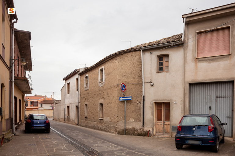 ubicato nel centro di Samassi, al termine di un'ampia corte privata, il bene è uno degli edifici storici del paese. Si tratta di una casa a corte con accesso da un portale via Santa Margherita. L'edificio, costruito in aderenza per due lati ed interamente realizzato con strutture d'elevazione in #ladiri# lasciate esternamente a vista, si sviluppa su due livelli per un'altezza di circa 5 metri alla gronda, su un impianto planimetrico assimilabile ad un rettangolo di 13 metri di lunghezza e 5 metri di larghezza. La copertura è tuttora rivestita con le sue antiche tegole di laterizio. Il prospetto su via Dante è caratterizzato da due finestre per piano, a sesto ribassato.