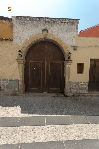 fabbricato suddiviso in due ambienti distinti ma collegati. Un ambiente ingresso su due livelli per ufficio e custode e un ambiente al piano terra per il deposito del grano. Fondazioni in pietrame e pavimento interno a quota 60 cm segnato all'esterno da uno zoccolo perimetrale. La struttura in elevazione è costituita da una muratura di spessore variabile, in pietrame e mattoni crudi. Solaio intermedio in legno con travature in castagno. Coperture con struttura in ginepro - costituita da travature semplici su muri portanti, travature portanti perpendicolari, travicelli trasversali - e piano di posa in canne. Copertura di tegole coppi. Presenza di tiranti con chiave esterne.