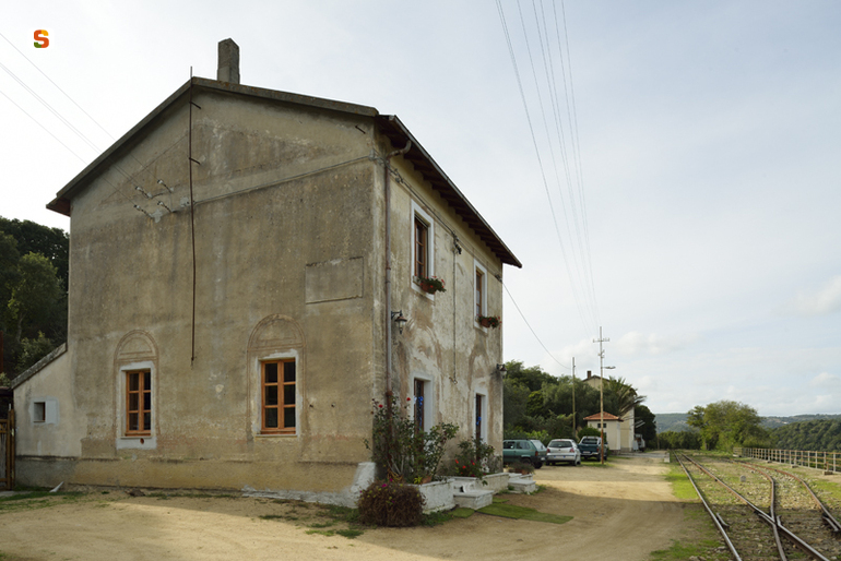 la casa cantoniera sorge a ridosso del passaggio a livello della stazione ferroviaria secondaria sarda, ed è alloggio del custode e cantoniere della zona. L'edificio, a pianta quadrata di 9 metri di lato, si sviluppa su due livellli. La struttura portante in blocchi di pietra granitica crea una scatola a maglia quadratica con muro di spina centrale, al centro il vano scala collega i due piani. Il tetto in legno con finitura in tegole, chiude la struttura semplice e funzionale. Gli esterni si presentano in stato di degrado, sono andate perse le cornici delle aperture e si intravedono i disegni geometrici che decoravano il marcapiano e la linea di gronda.