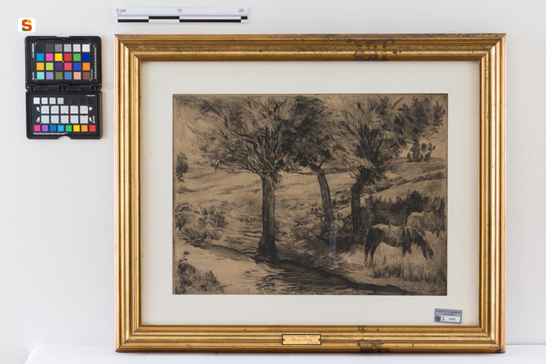 Siesta. paesaggio con figure e animali