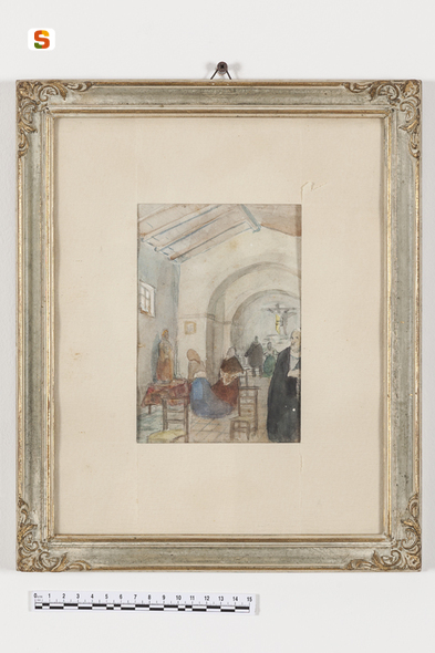 Interno di chiesa. interno di chiesa con figure