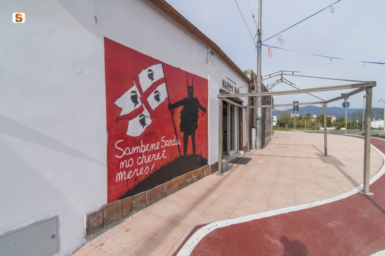 Sambene Sardu no cheret meres!. composizione con figura e bandiera