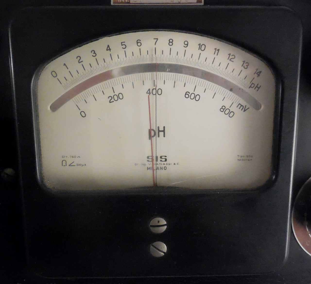 - ISCRIZIONI in alto al centro - JONOSIS/ MISURATORE DEL pH/ TIPO pH-QL - capitale - a incisione -