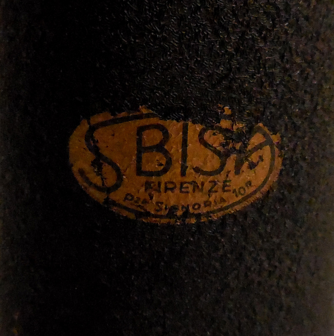 - STEMMI sul fusto e sul bordo del piano - commerciale - Marchio - Sbisà - 2 - Scritta curvilinea a lettere capitali racchiusa entro una cornice ellittica generata dal prolungamento delle lettere S e A: SBISA'/ FIRENZE/ P.ZA SIGNORIA 10°