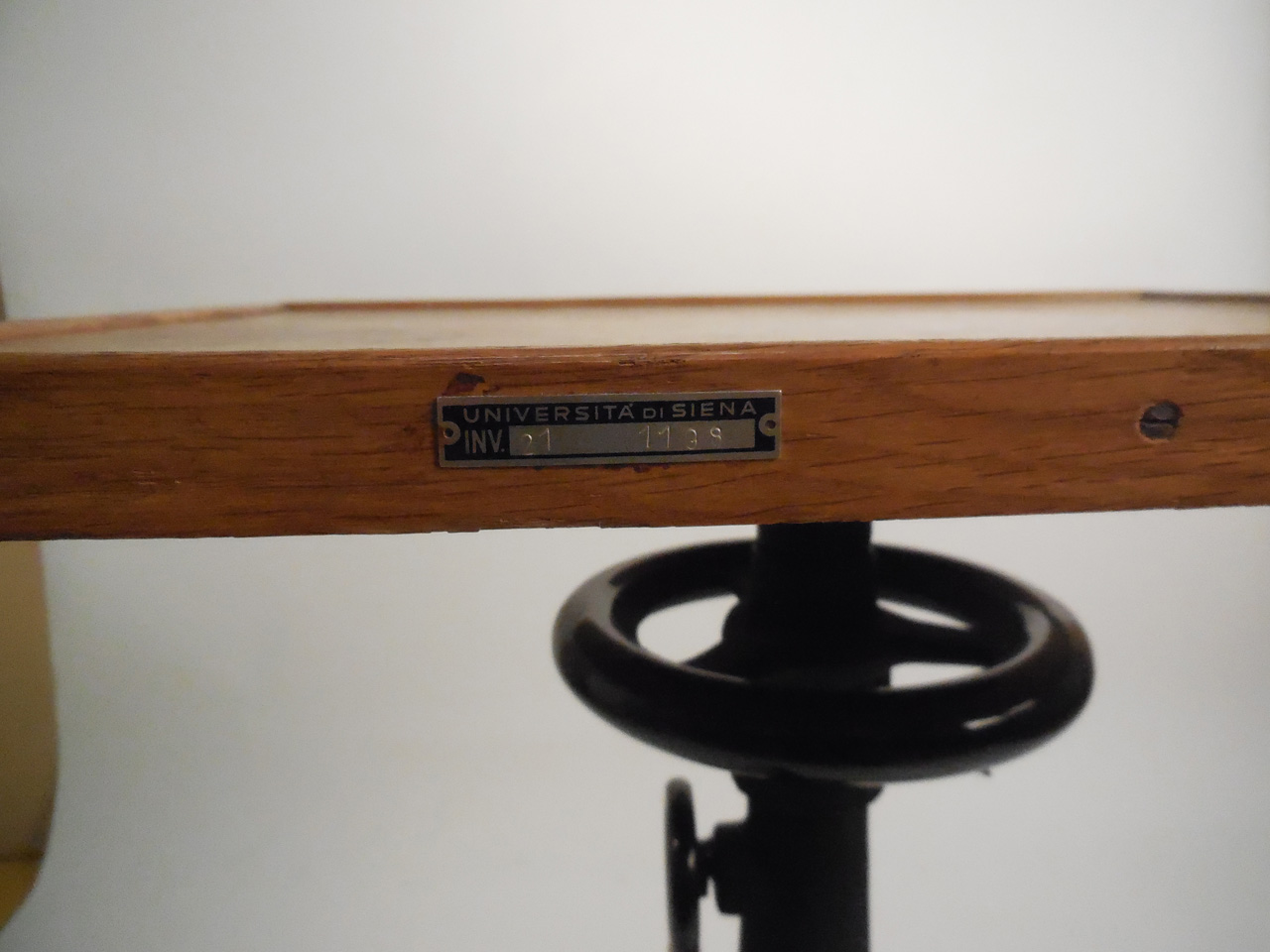 - ISCRIZIONI targhetta metallica sul bordo del piano - UNIVERSITA'DI SIENA/ INV - capitale - a incisione -