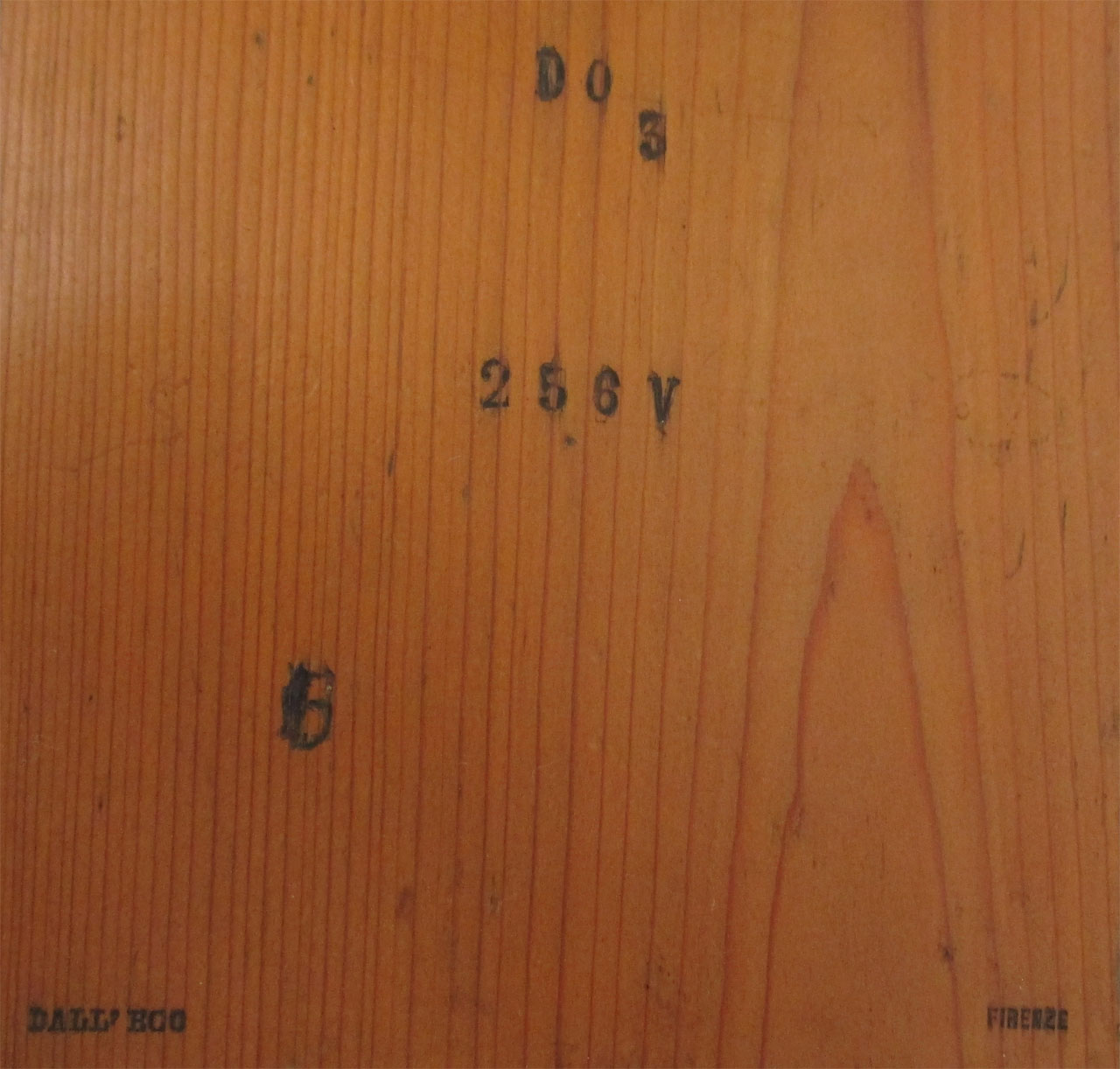- ISCRIZIONI sulla cassa di risonanza - DO3/ 256V/ 5/ DALL' ECO FIRENZE - capitale - a incisione -