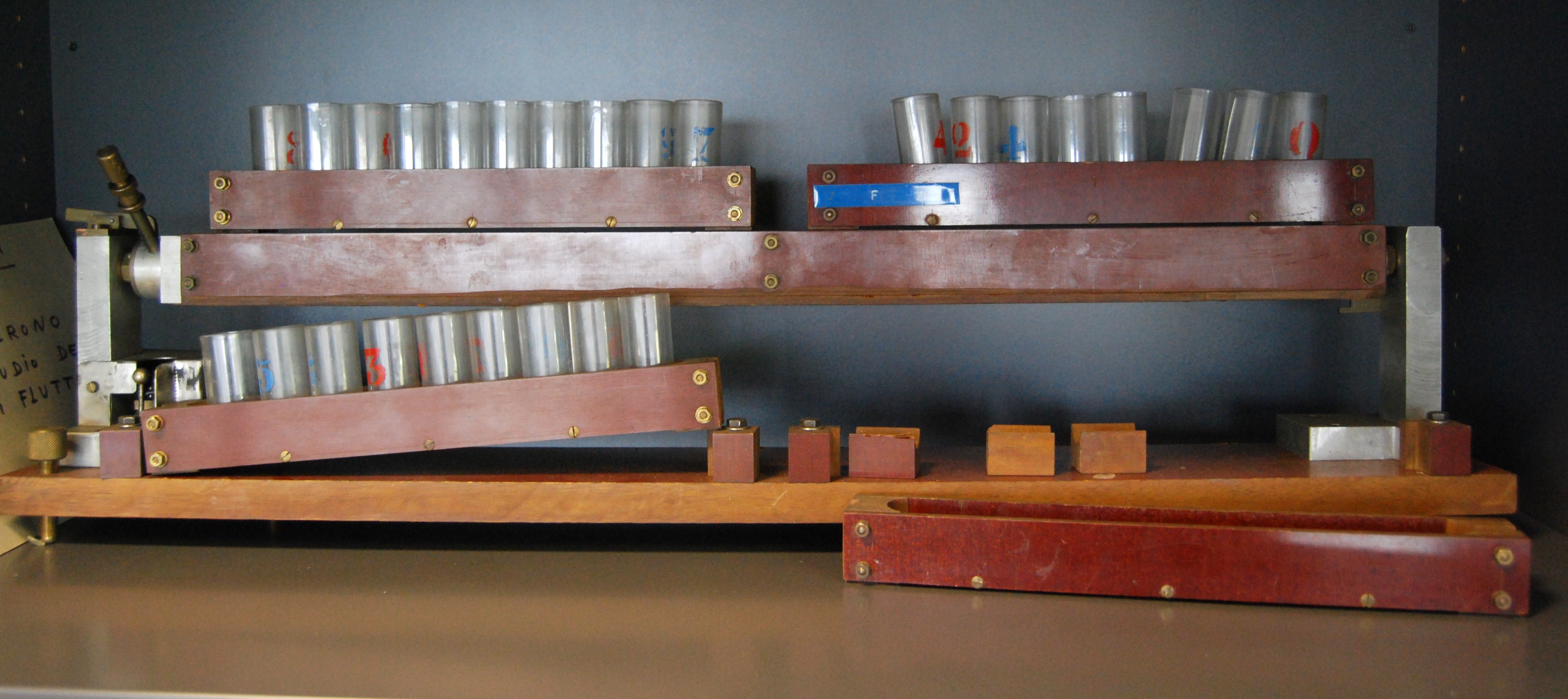 Miscelatore sincrono per i Test-Piccardi, composto da un supporto centrale, due bracci ribaltabili di cm 32x4x4, due bracci fermi sottostanti (removibili) e ventisette bicchieri per effettuare la misura. Leva e meccanismo in metallo per il ribaltamento dei bracci mobili