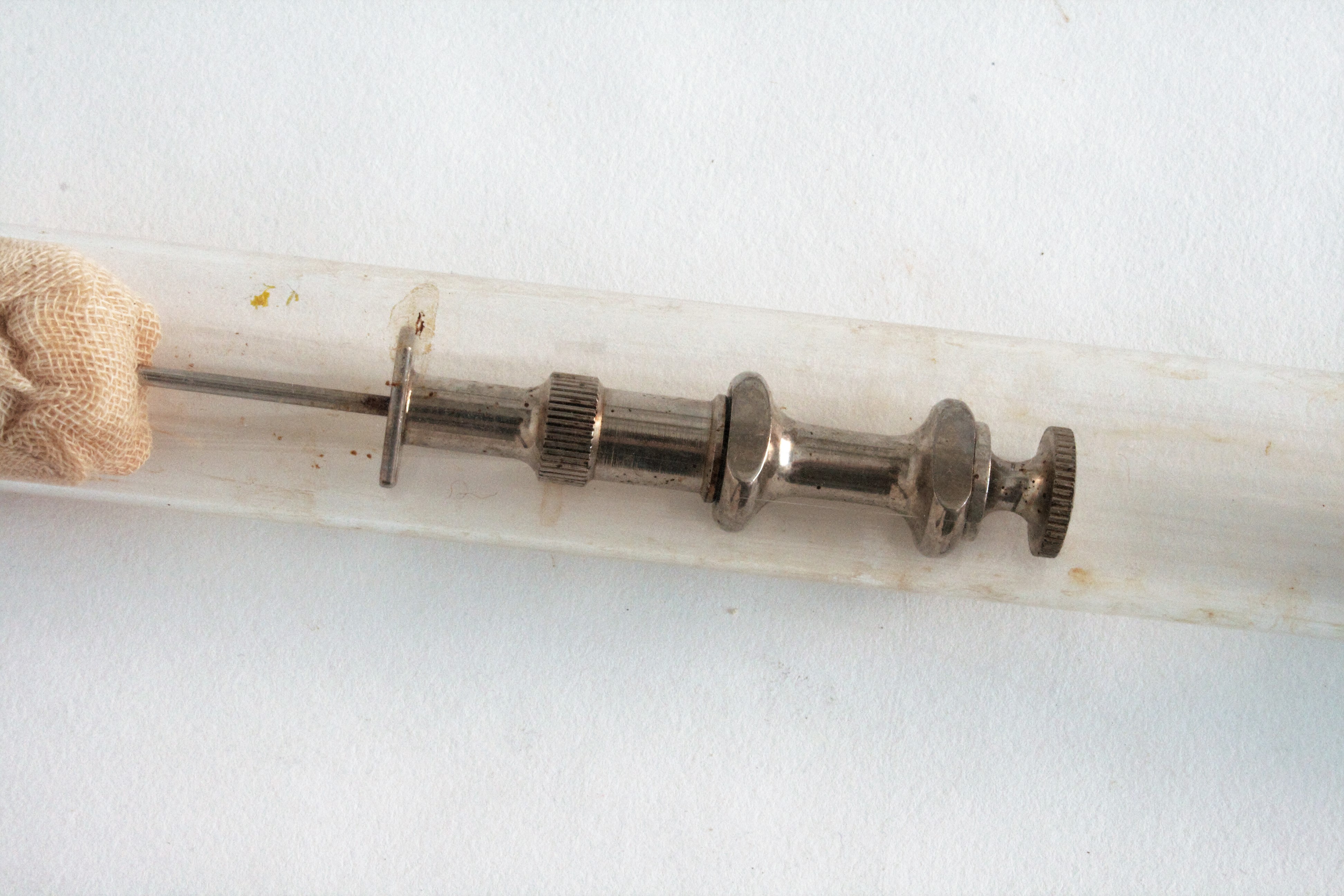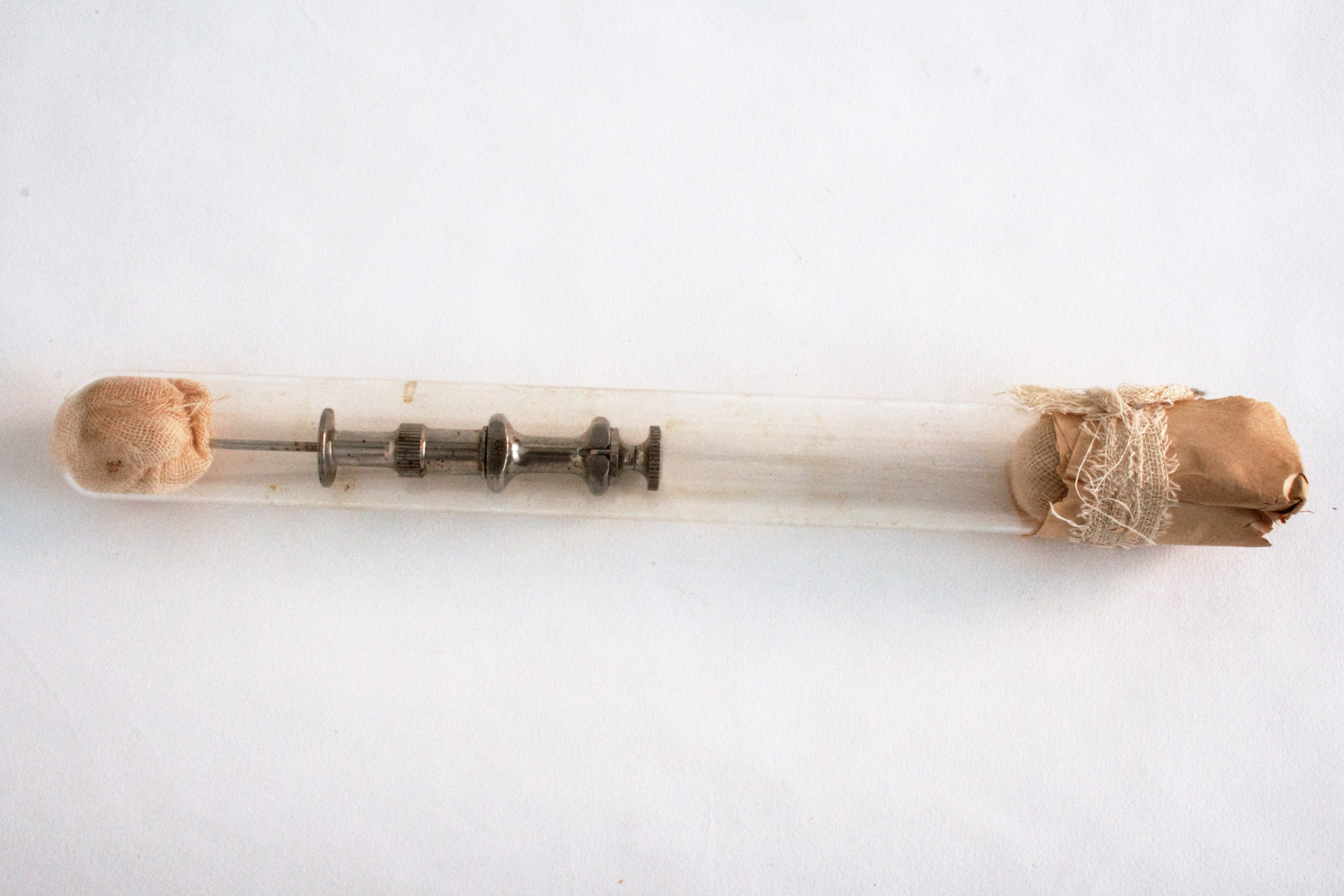 Ago con montatura larga e cannula corta; contenuto in provetta chiusa con cappuccio: cannula per puntura sternale con innesto Luer-Lock
