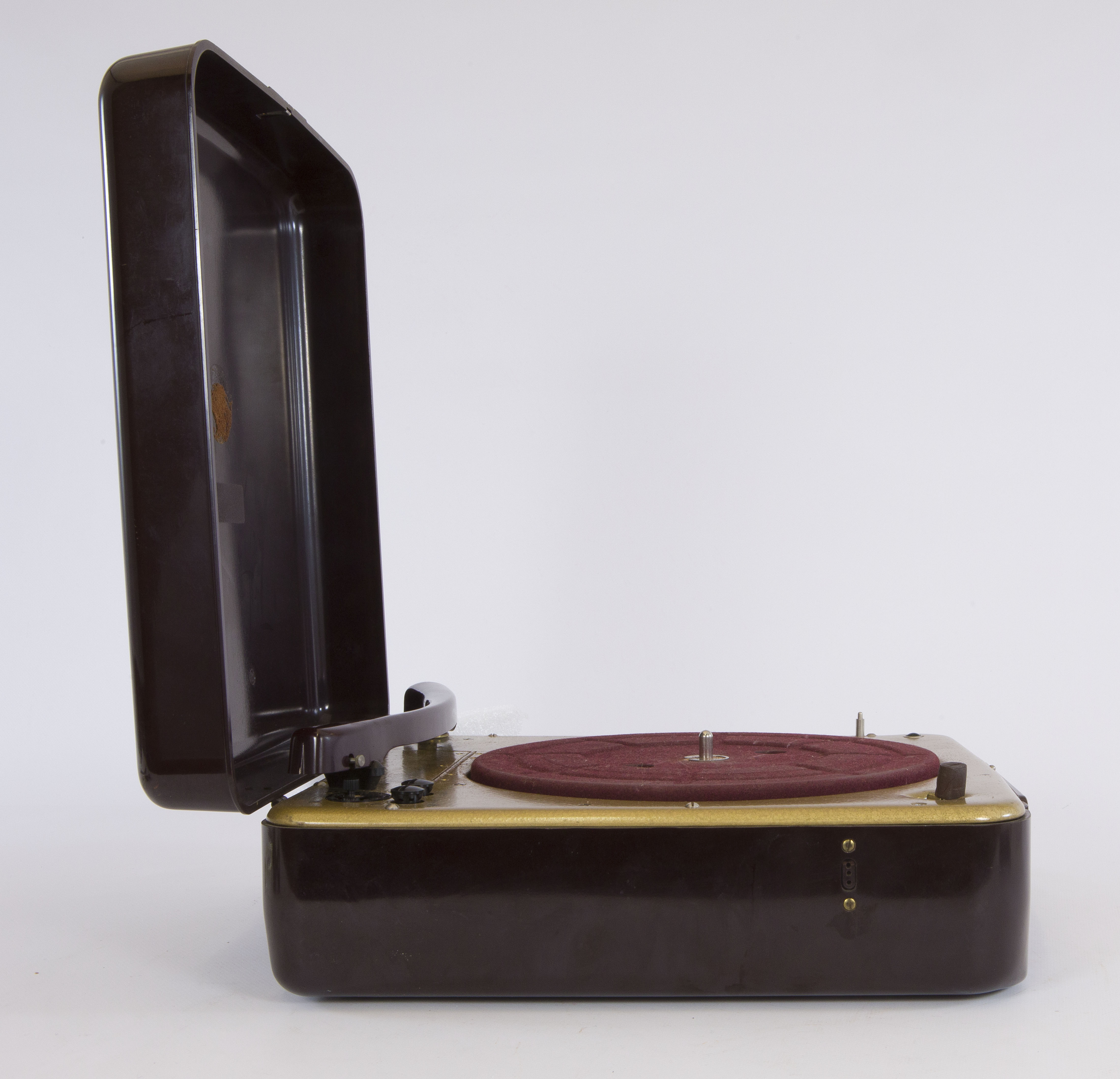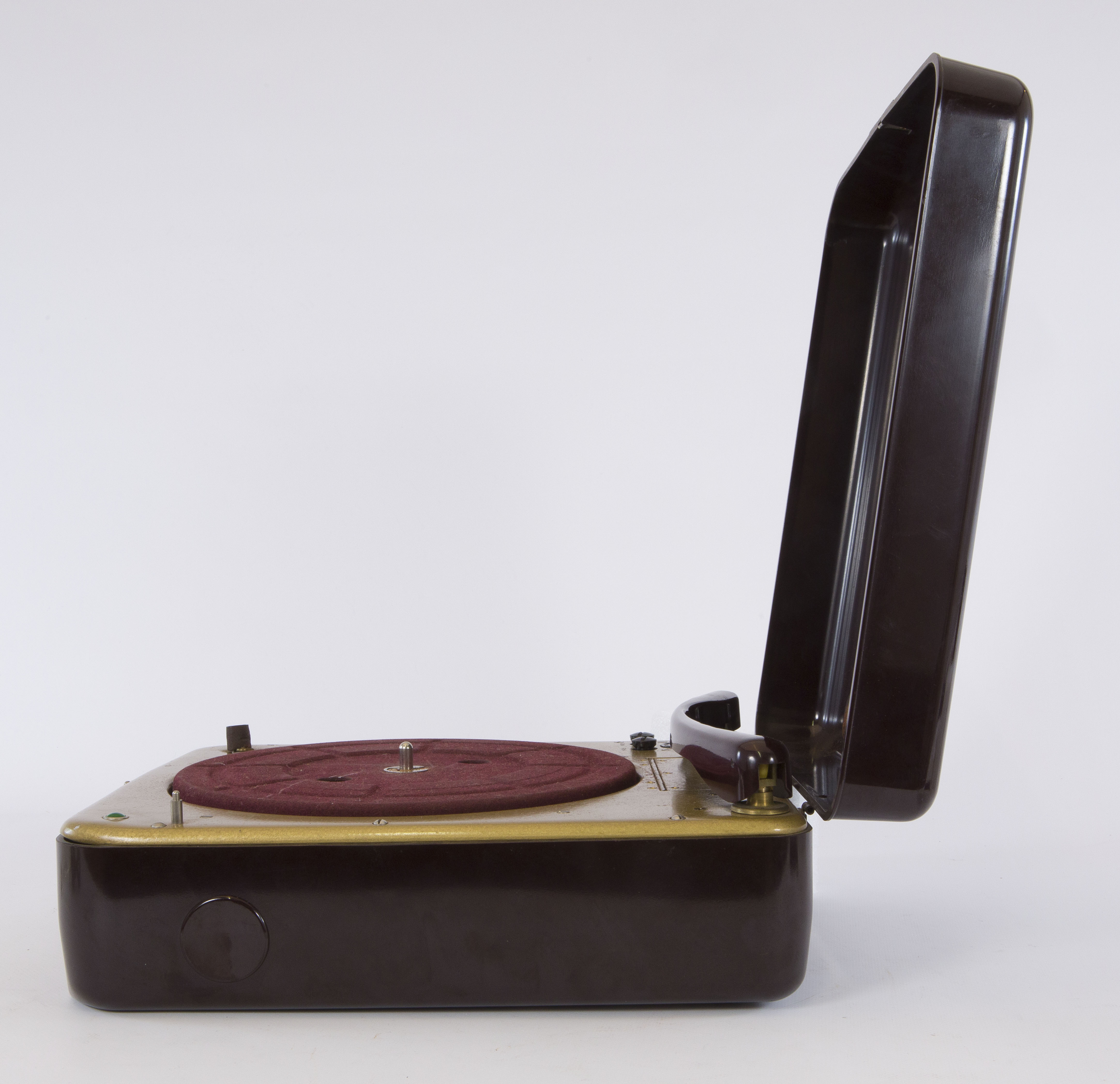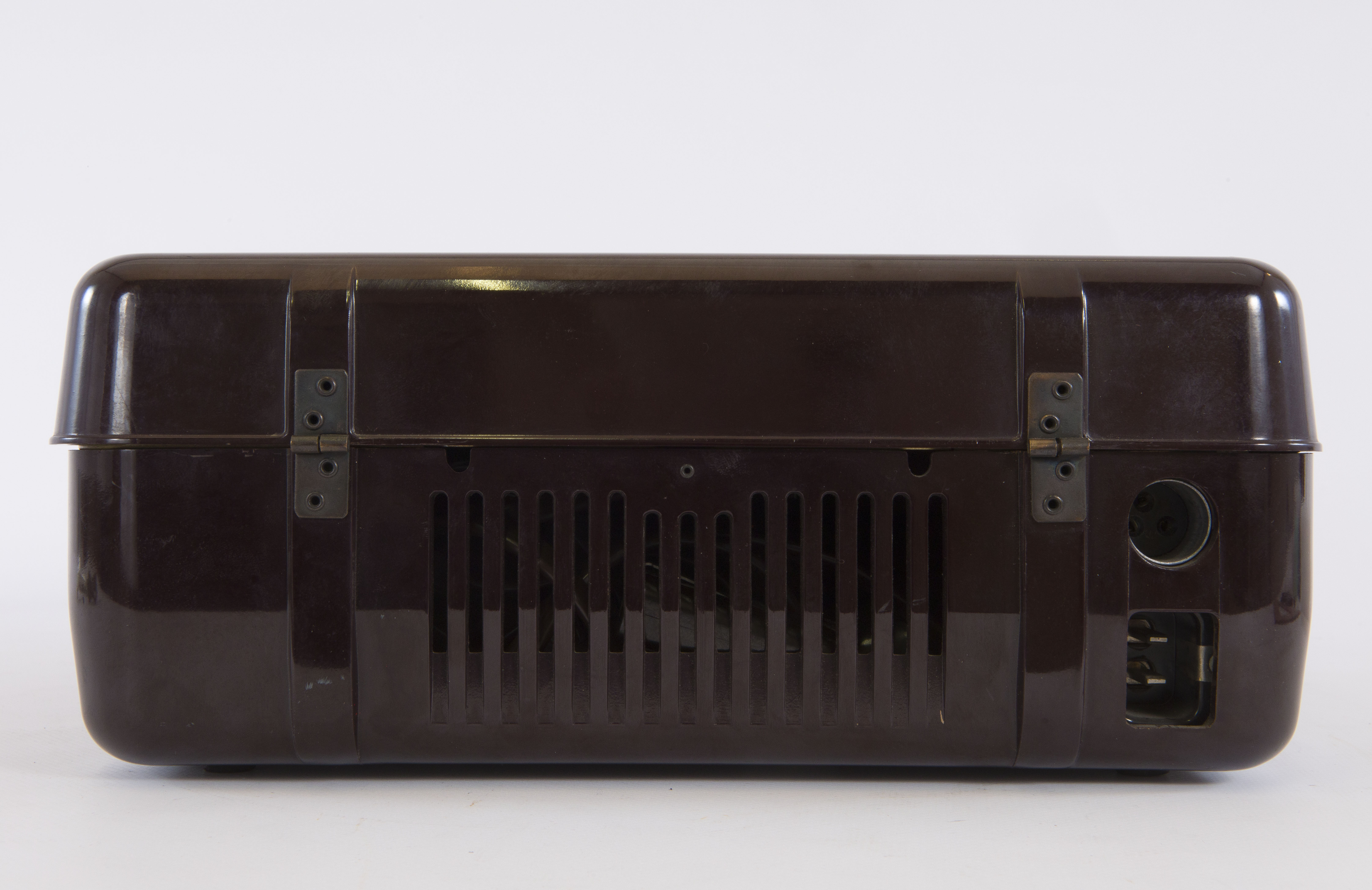 Contenitore: la base rettangolare in bachelite sostiene uno chassis in metallo, anch'esso di forma rettangolare. Un coperchio removibile, anch'esso in bachelite, copre l'intero apparecchio. All'interno dello chassis si trovano il motore ei circuiti elettrici. Sul piano superiore è posizionato il piatto, rivestito di feltro rosso, mentre sulla destra del piatto è situato il braccio in bachelite, che ospita il fonorivelatore elettromagnetico. I comandi, posti a sinistra del piatto, consistono in due manopole per la registrazione e la regolazione del volume. Sempre sul piano superiore, a destra, si trova una spia luminosa verde di accensione e un perno per l’appoggio del braccio, mentre a sinistra c'è una levetta di freno. Sul lato sinistro è presente l’ingresso per le cuffie. Sul retro dell'apparecchio è presente l’ingresso per il cavo di alimentazione e l’ingresso per il telefono o il microfono, accanto alla presa d'aria per il motore. La parte frontale è dotata di una griglia protettiva per l'altoparlante, che permette la diffusione del suono e due rotelle per regolare probabilmente il volume e il tono. Motore: a corrente alternata 95 - 240 Volt 50 Hz e 45 Watt. Sistema di riproduzione del suono: braccio con testina elettromagnetica. Modalità d’uso: collegare il dimafono a un telefono o a un microfono. Posizionare il disco sul piatto designato e abbassare la testina di lettura/registrazione sul disco. La testina, dotata di una punta elettromagnetica e di un traferro, trasferisce i segnali dal disco all'amplificatore. Regolare il volume e il tono della registrazione, quindi sbloccare la levetta del freno per avviare la registrazione. Una volta completata la registrazione, sia essa una chiamata o un'altra sessione, è possibile riprodurre le registrazioni direttamente dal disco. Questo consente agli utenti di ascoltare le registrazioni e, se necessario, prendere appunti o trascrivere le conversazioni