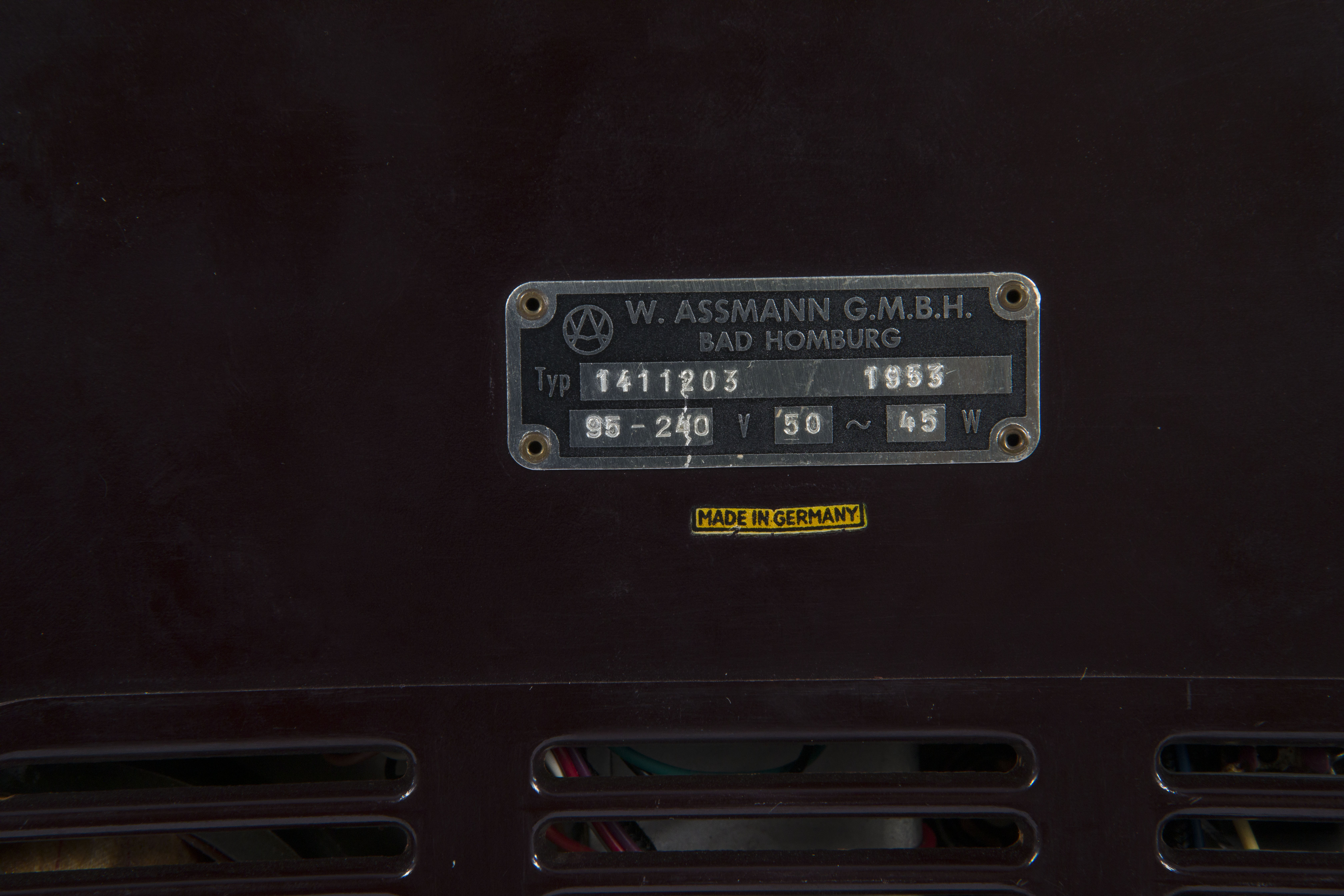 - NOTIZIE STORICO CRITICHE I dittafoni erano dispositivi utilizzati principalmente negli uffici per registrare e riprodurre messaggi che poi venivano dattilografati. Fino agli anni '50, questi apparecchi funzionavano secondo il principio del fonografo inventato da Thomas Edison nel 1877: i suoni venivano registrati su un cilindro di cera rotante grazie a una puntina. Con il secondo dopoguerra, i dittafoni a cilindro furono rapidamente sostituiti da nuovi modelli che utilizzavano supporti magnetici, come filo, nastro e disco. Questi dispositivi moderni offrivano prestazioni superiori a costi più contenuti e dimensioni ridotte, integrando le funzioni di registrazione, riproduzione e piallatura in un solo apparecchio. La miniaturizzazione dei dispositivi magnetici portò anche alla diffusione di dittafoni e registratori portatili al di fuori degli uffici. Il "dimafono Assmann" è un esempio specifico di dittafono per la registrazione delle conversazioni telefoniche, prodotto dalla Wolfgang Assmann GmbH, un'azienda tedesca di elettronica fondata nel 1946. A partire dalla fine degli anni '40, l'azienda sviluppò il “dimafon” (o “dimafono”), il primo dittafono basato su dischi magnetici, il cui nome deriva dall'abbreviazione di “dictation magnetophone” (magnetofono per dettatura). Il modello descritto in questa scheda rappresenta un esempio di tale tecnologia