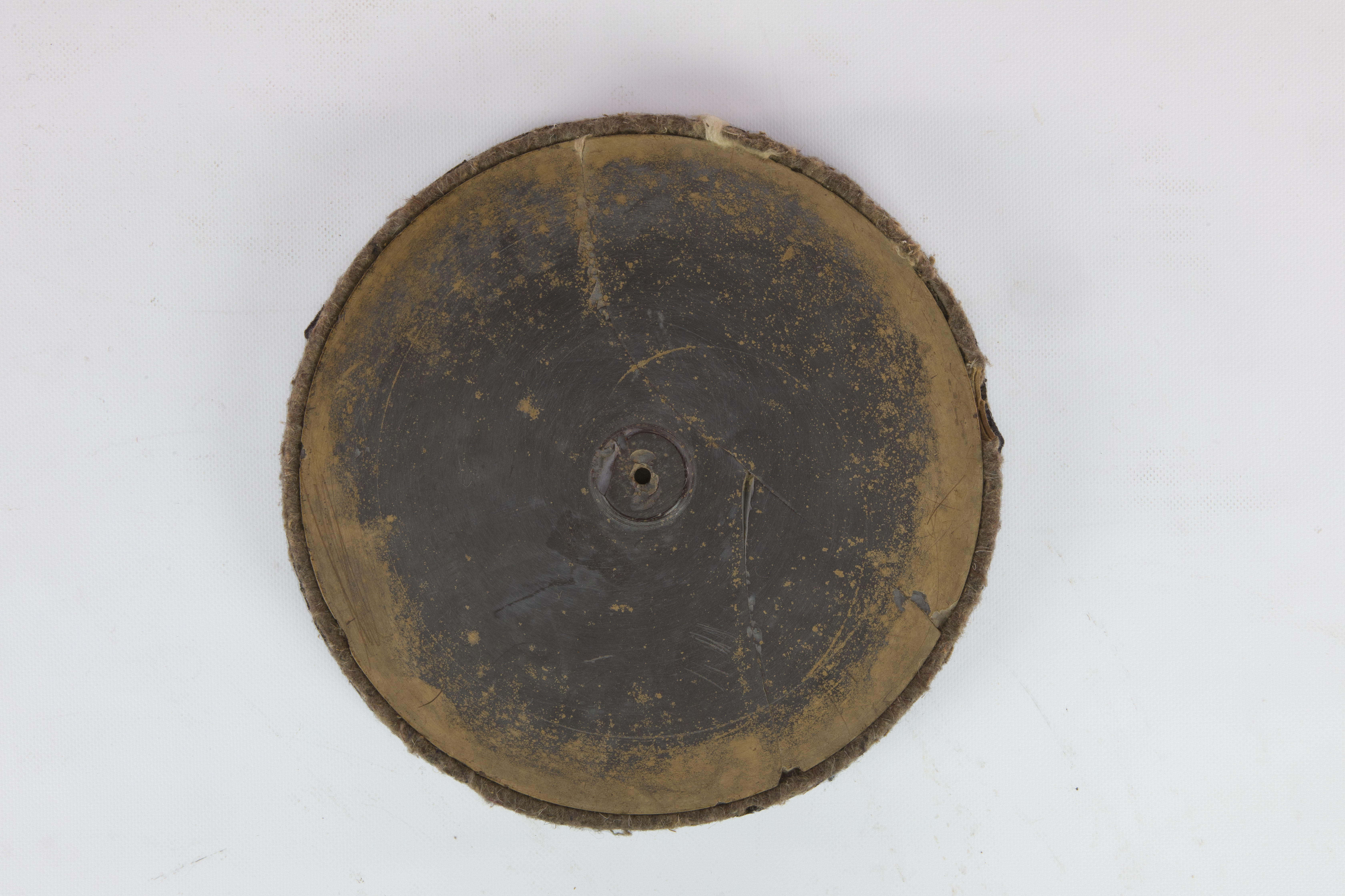 Disco in cera, con foro centrale, contenuto in una scatola circolare in cartone e feltro, con coperchio. Funzione: L'incisone dei dischi di cera, da cui ricavare master fonografici, prevedeva un procedimento articolato e l'impiego di specifica apparecchiatura tecnica: le onde sonore prodotte da una fonte sonora vengono convogliate dalla tromba acustica, convertite in vibrazioni meccaniche, che trasferite alla puntina dal diaframma, incidono un solco nel disco di cera in rotazione