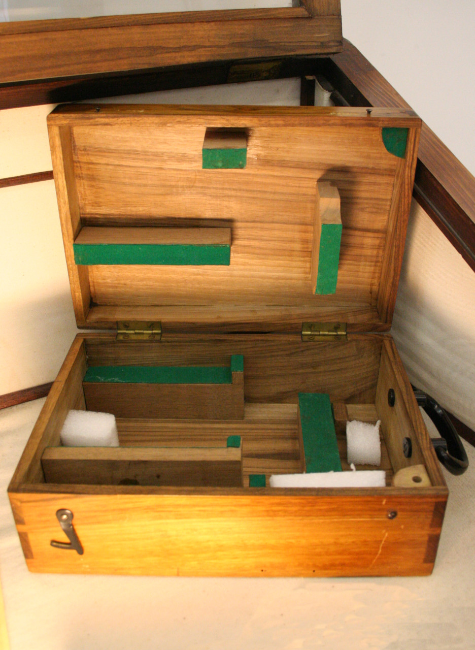 - NOTIZIE STORICO CRITICHE Lo strumento è danneggiato e probabilmente mancante di alcune parti. E' associato ad un elemento cilindrico snodabile e ad una scatola lignea forse non pertinenti. Le ricerche nelle collezioni di strumenti scientifici non hanno consentito un'identificazione certa della sua funzione