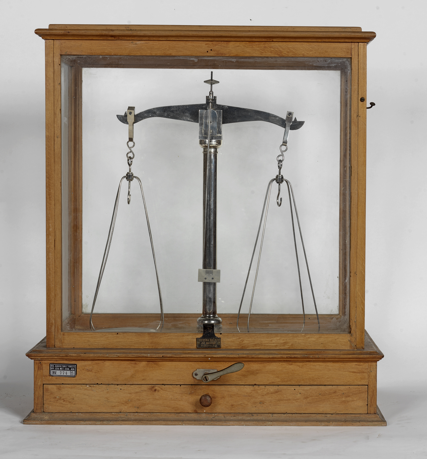 - NOTIZIE STORICO CRITICHE La bilancia di precisione per uso di laboratorio, costruita dalla fiorentina Officina Galileo, fa parte della collezione museale di Meteorologia, Sismologia e Idrobiologia, raccolta strettamente legata all’istituzione del Regio Ufficio Centrale di Meteorologia (1876) ed ai suoi fondamentali sviluppi storici. Primo servizio governativo di meteorologia e geofisica con ruolo di centralità, l’Ufficio ha avuto la propria sede presso il prestigioso complesso monumentale del Collegio Romano dal 1879 al 2016. Suo antico progenitore era l’Osservatorio Meteorologico e Astronomico del Collegio Romano, noto ai più come Torre Calandrelli, mentre suo erede ultimo è il Consiglio per la Ricerca in Agricoltura e l’Analisi dell’Economia Agraria, attraverso l’ex Unità di Ricerca per Climatologia e la meteorologia applicate all’Agricoltura (CRA-CMA) dal 2017 inglobata nel Centro di Ricerca Agricoltura e Ambiente (CREA-AA). Con la chiusura del Laboratorio Centrale di Idrobiologia (2007), la collezione si è arricchita anche di una parte del museo dello storico laboratorio