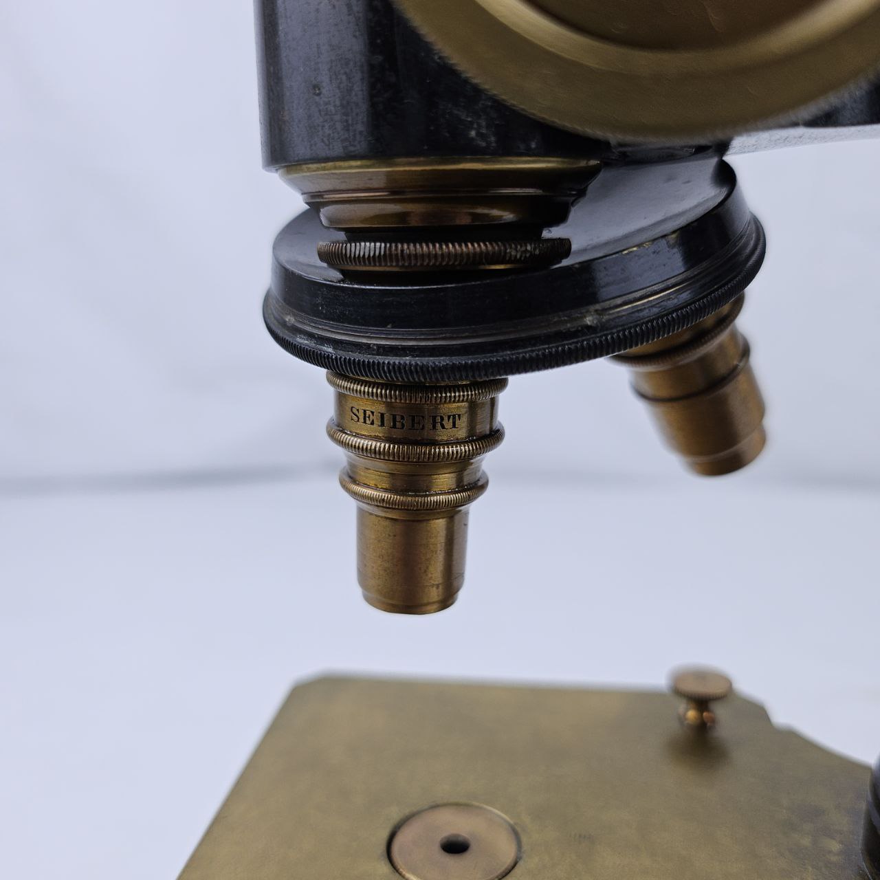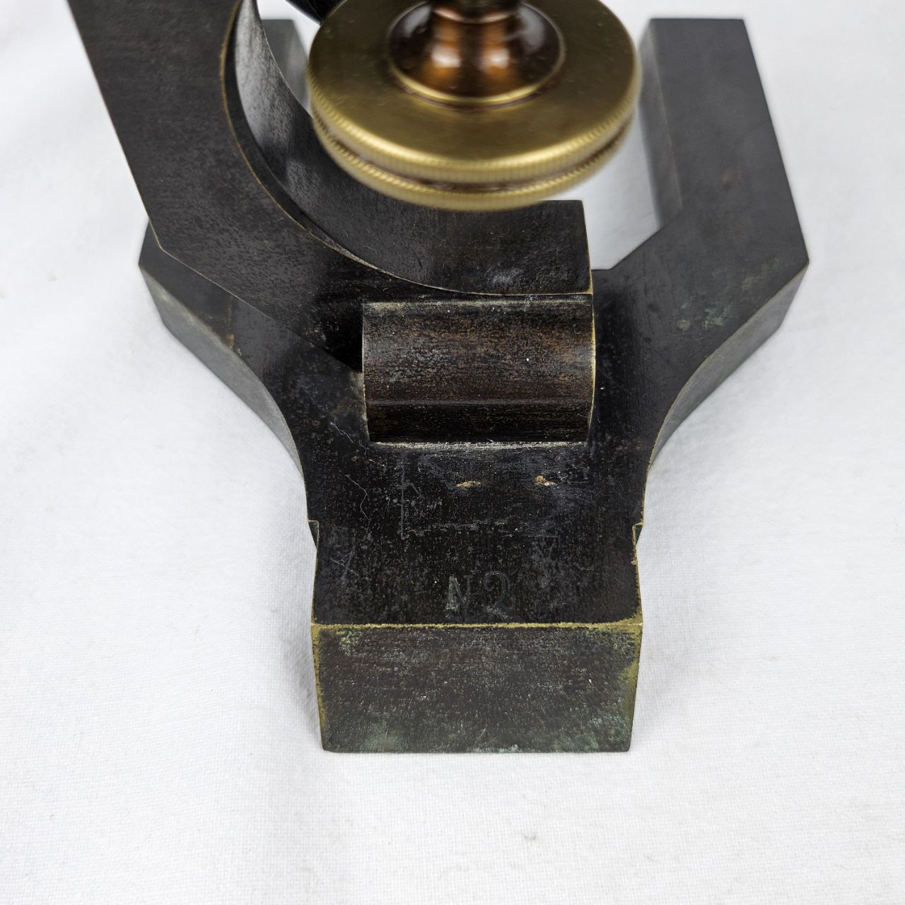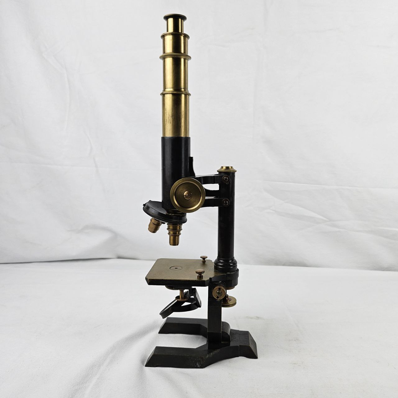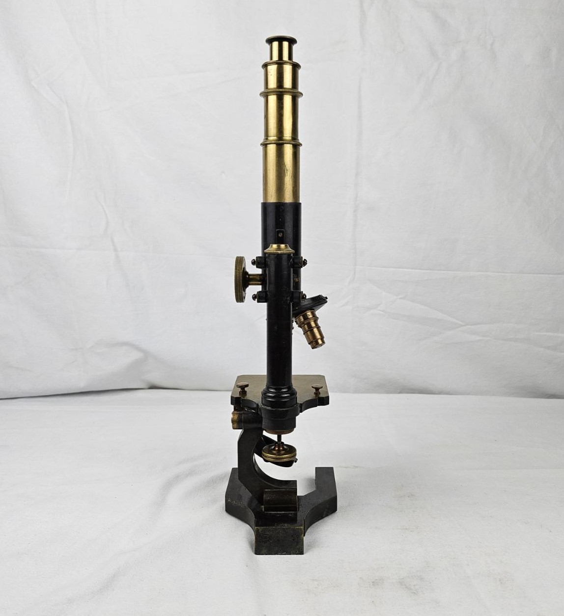 il microscopio è sostenuto da una base a forma a "U". È dotato di un portaoggetti con lente inferiore e di due alloggiamenti per i tubi ottici. Nella parte inferiore si trova un vetrino circolare, utilizzato per l’osservazione dei campioni