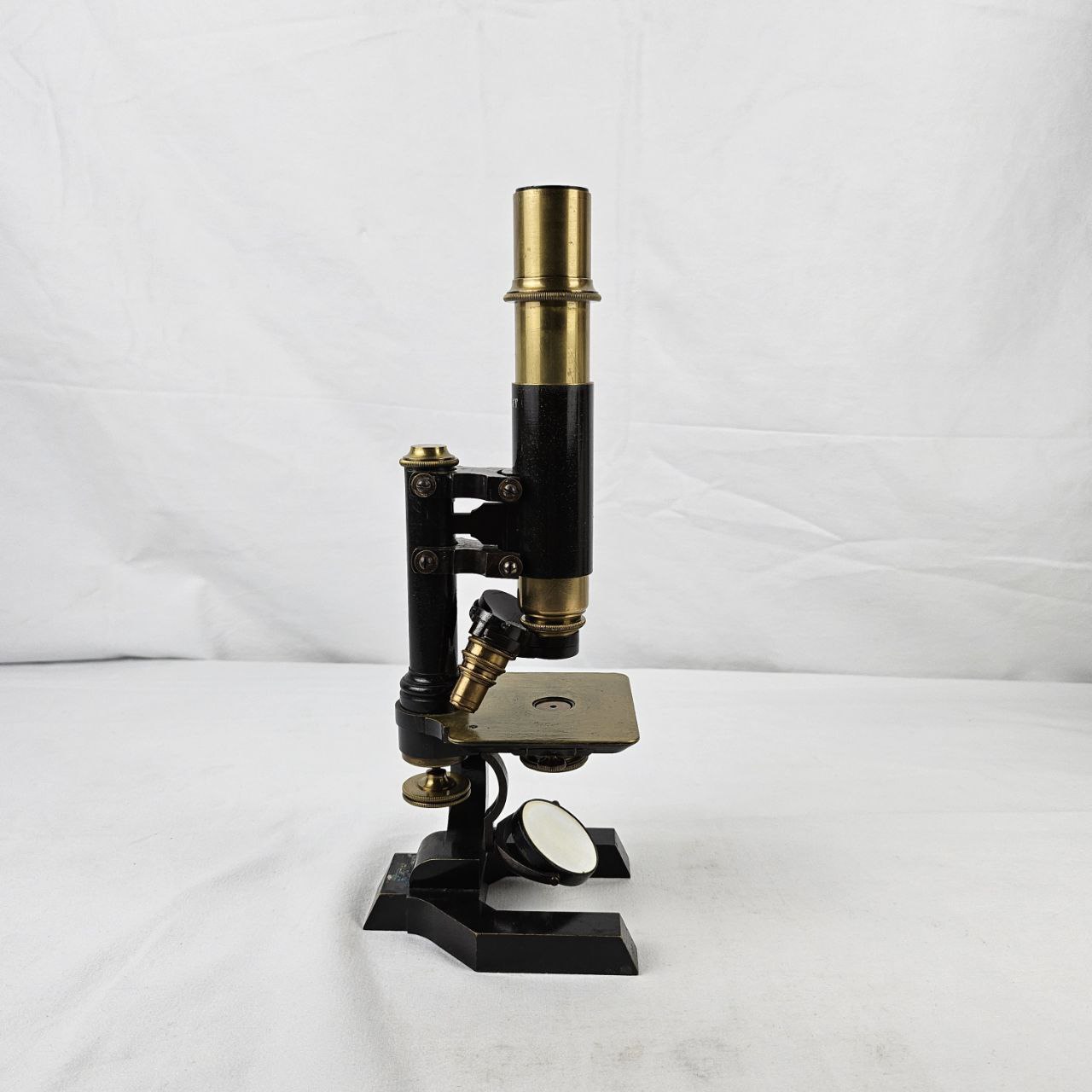 il microscopio è composto da un tubo ottico con messa a fuoco regolabile tramite meccanismo a cremagliera. Alla base del tubo è presente una testa porta-obiettivi girevole, sulla quale sono montati due obiettivi, con predisposizione per un terzo. La base dello strumento, a forma di “U”, sostiene un tavolino portaoggetti dotato di diaframma per la regolazione della luce incidente sul campione e uno specchio orientabile