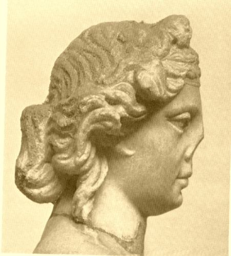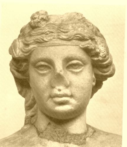Statuetta di Dioniso sul plinto tondeggiante, con testa non pertinente.