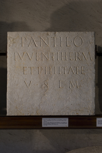 - ISCRIZIONI fronte - Pantheo / Iuventii Herma / et Philtate / v(otum) s(olverunt) l(ibentes) m(erito). - Lettere posate maiuscole - Incisione - latino